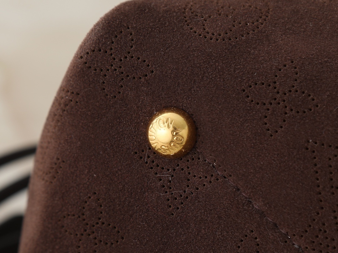 スエードレザーの一部には、ルイ・ヴィトンの象徴であるモノグラムのパンチングパターンを施しました。繊細な穴あけ加工で表現されたモノグラムモチーフは、ブランドのアイデンティティを明確に示しつつ、スエードの柔らかさを損なわない「さりげないアピール」を実現。光の当たり方で模様が浮かび上がり、動きに伴い表情を変えるのが魅力です。