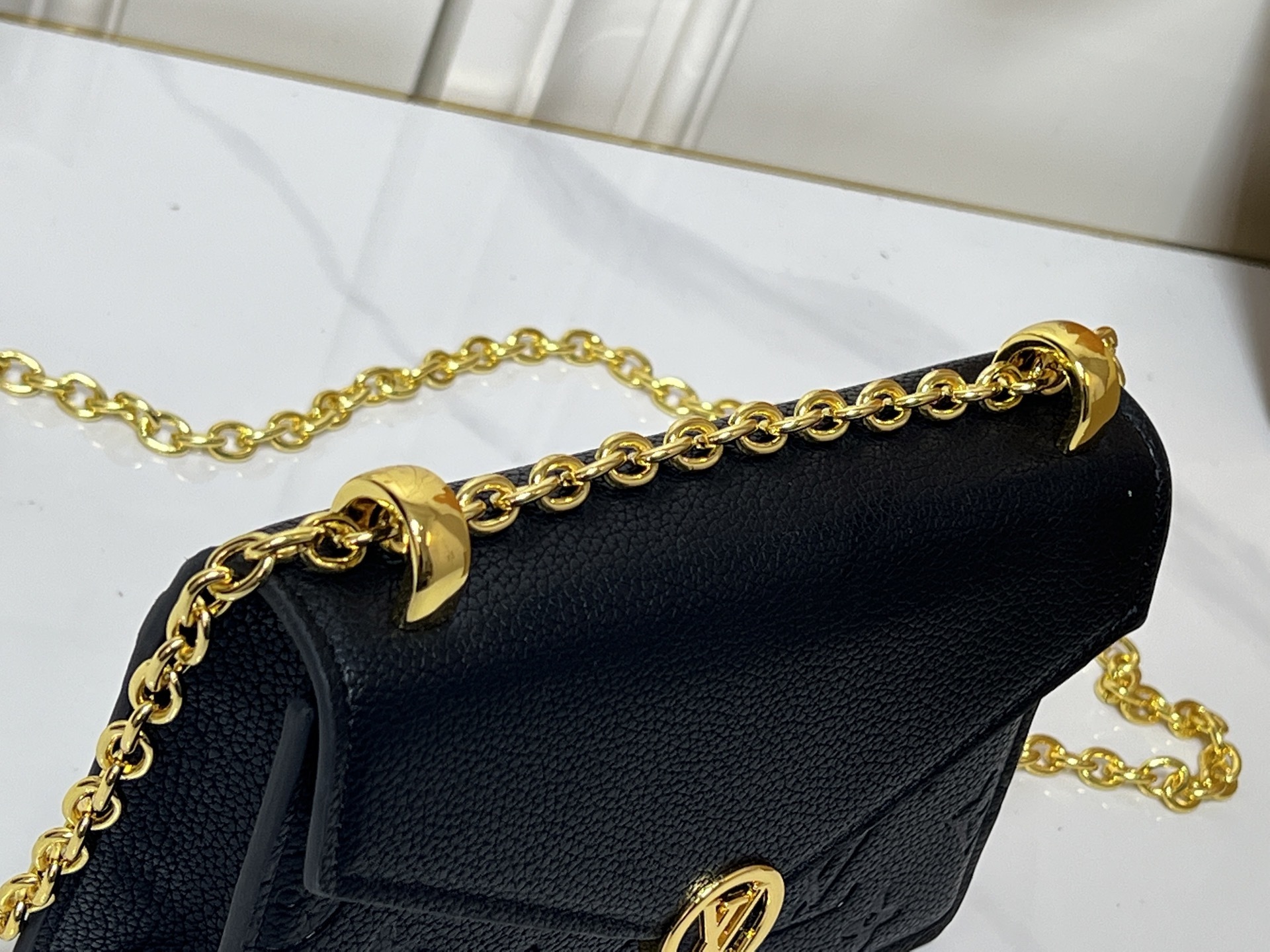 V字型フラップ:前面に配されたV字型のフラップは、ルイ・ヴィトンの伝統的なデザイン要素を現代的に再解釈。鋭い角度が女性らしいラインを強調し、全体のフォルムに「シャープな美しさ」を添えます。