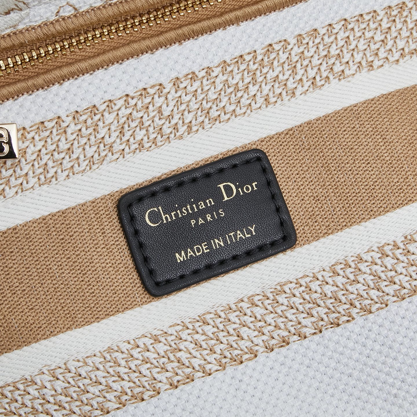 バッグ正面にはディオールのロゴを刺繍で表現。繊細なステッチでロゴを描くことで、布地の柔らかさを損なわず、ブランドのアイデンティティを「さりげなく」主張。刺繍の密度と光沢が、「優雅さの中に凛としたカッコよさ」を添え、他のアイテムとの差別化を図ります。