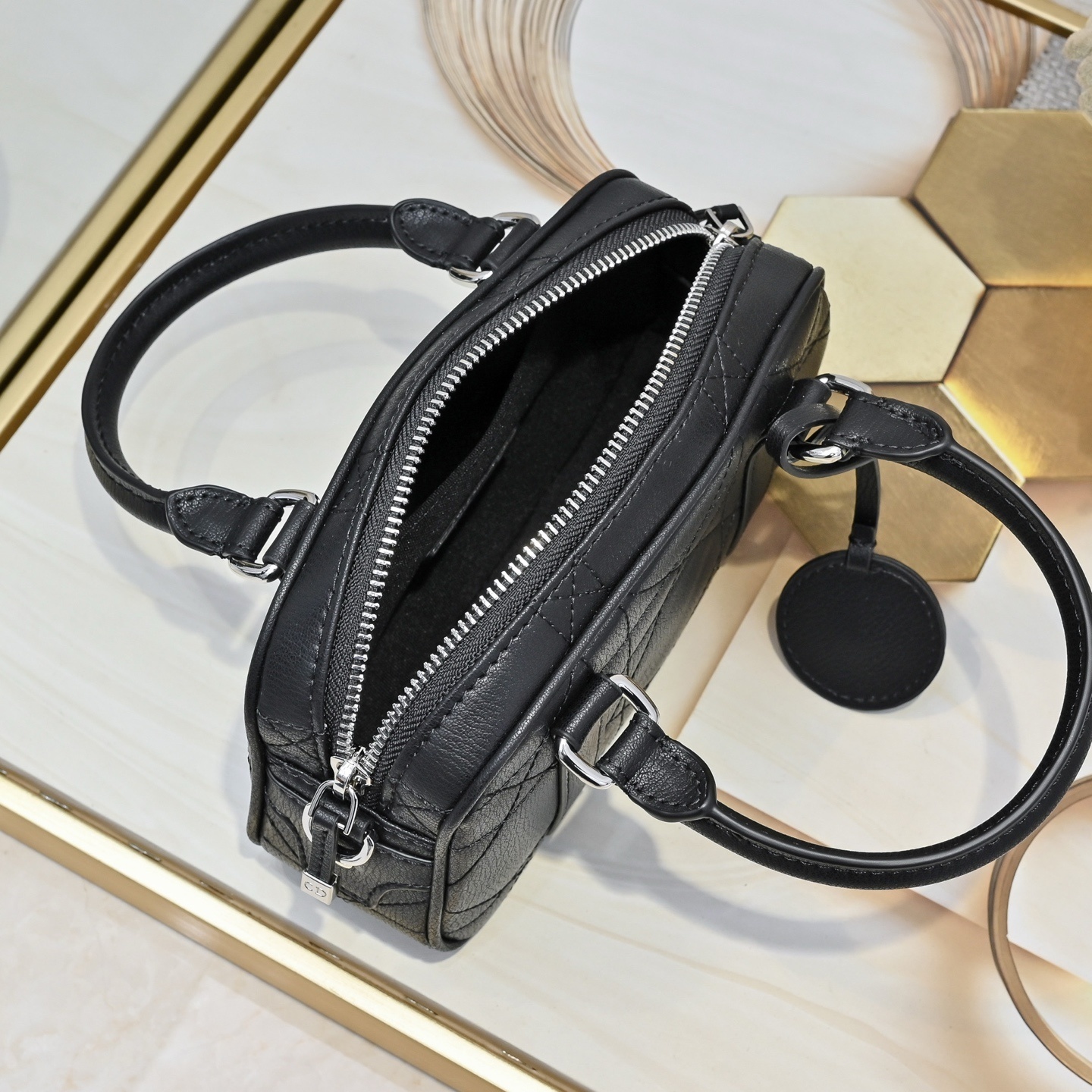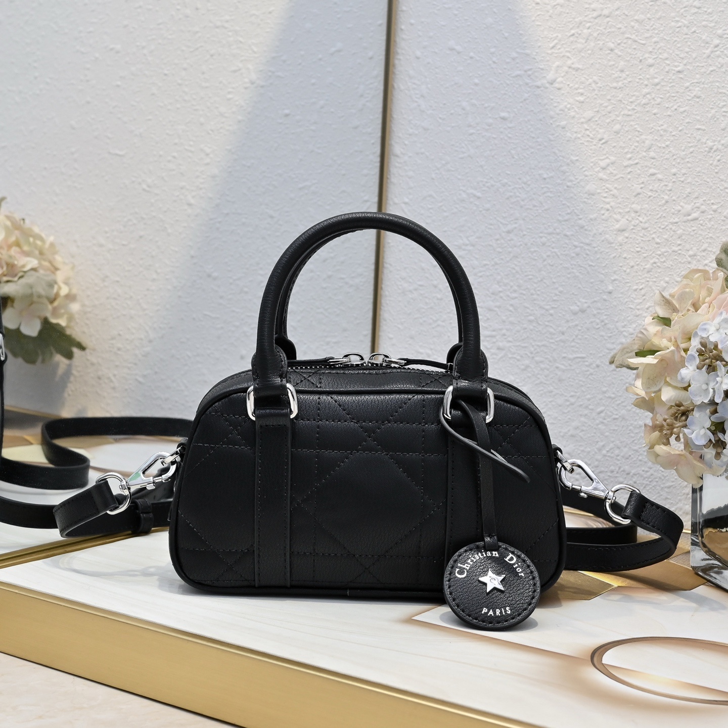 キャンバスの裁断から縫製まで、ディオールの熟練職人が手掛ける精密な工芸を投入。ボウリングバッグ特有の曲面を滑らかに処理し、縫い目の密度を調整することで「型崩れしにくい柔軟性」を実現。表面のプリントは剥がれにくい特殊加工を施し、「永続的な美しさ」を保証します。