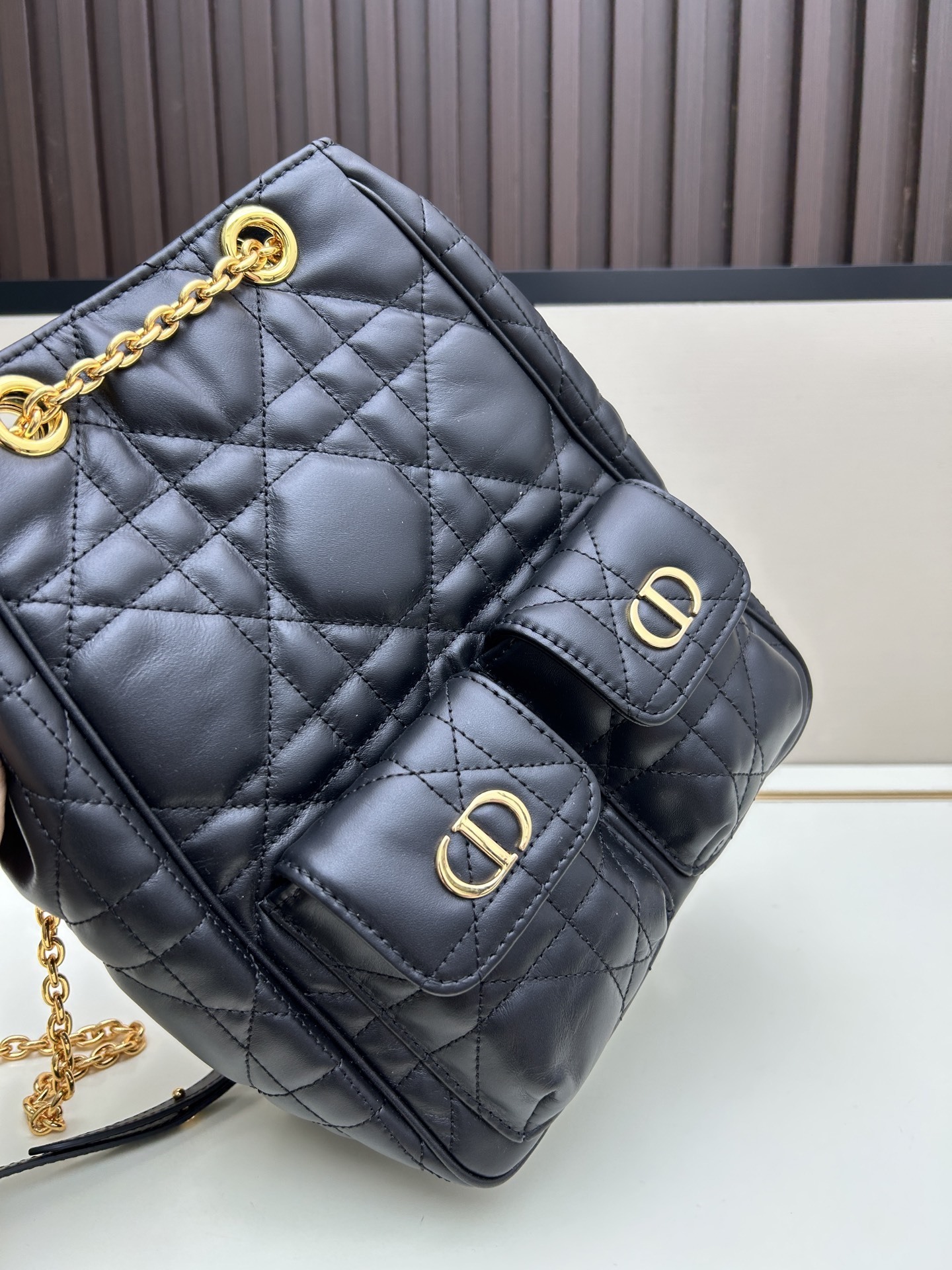 【DIOR(ディオール)Caro Multicarry シリーズ ダブルチェーンバケツバッグ】 —— 輸入ラムレザーとダブルチェーンが織りなす「休暇を彩る実用美バケツバッグ」——