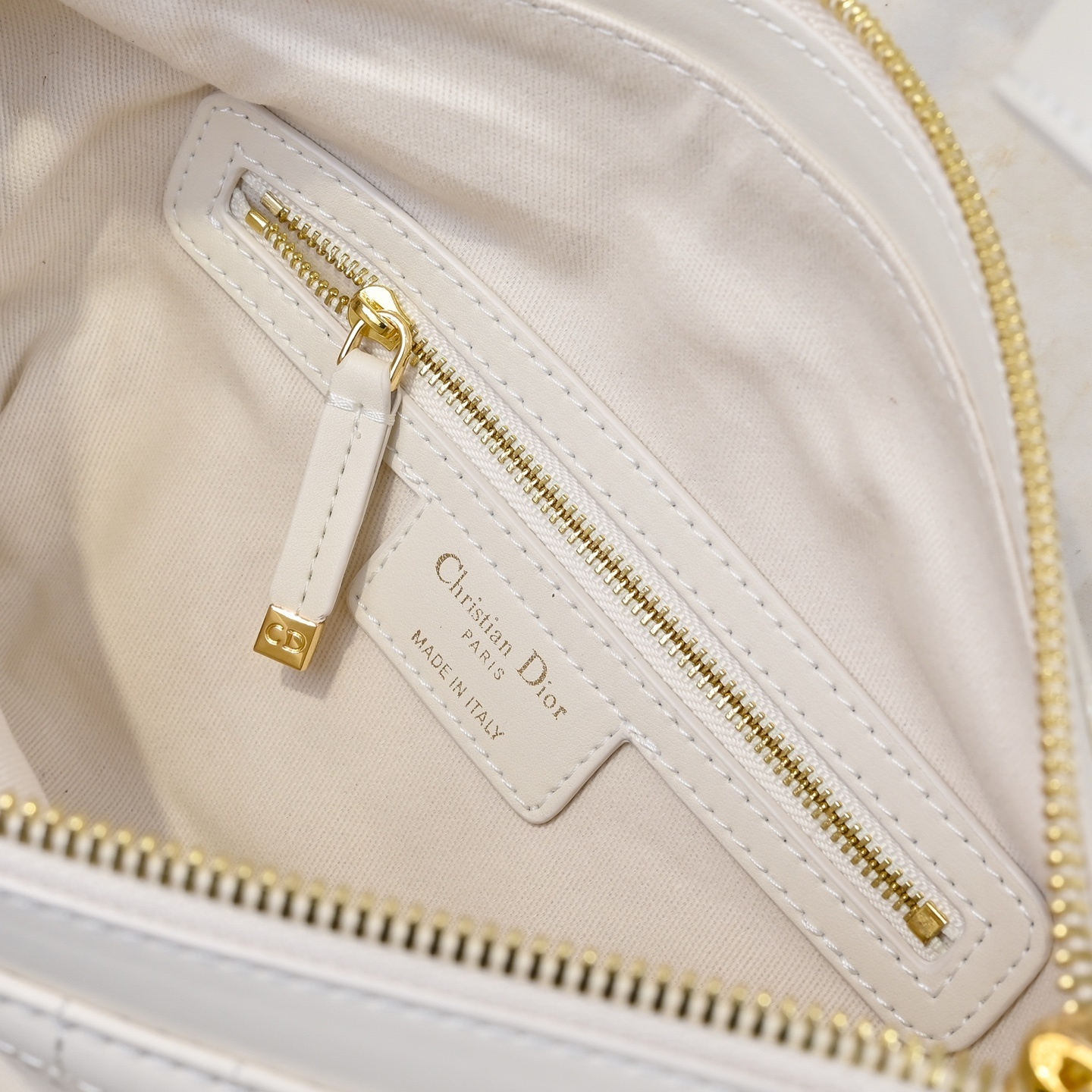 Christian Dior Parisロゴ:サイドの装飾用ポケットのレザー製ジッパーヘッドには、レトロゴールドメッキの金属製Christian Dior Parisロゴをあしらい、ヴィンテージ感と現代的な品格を融合させます。