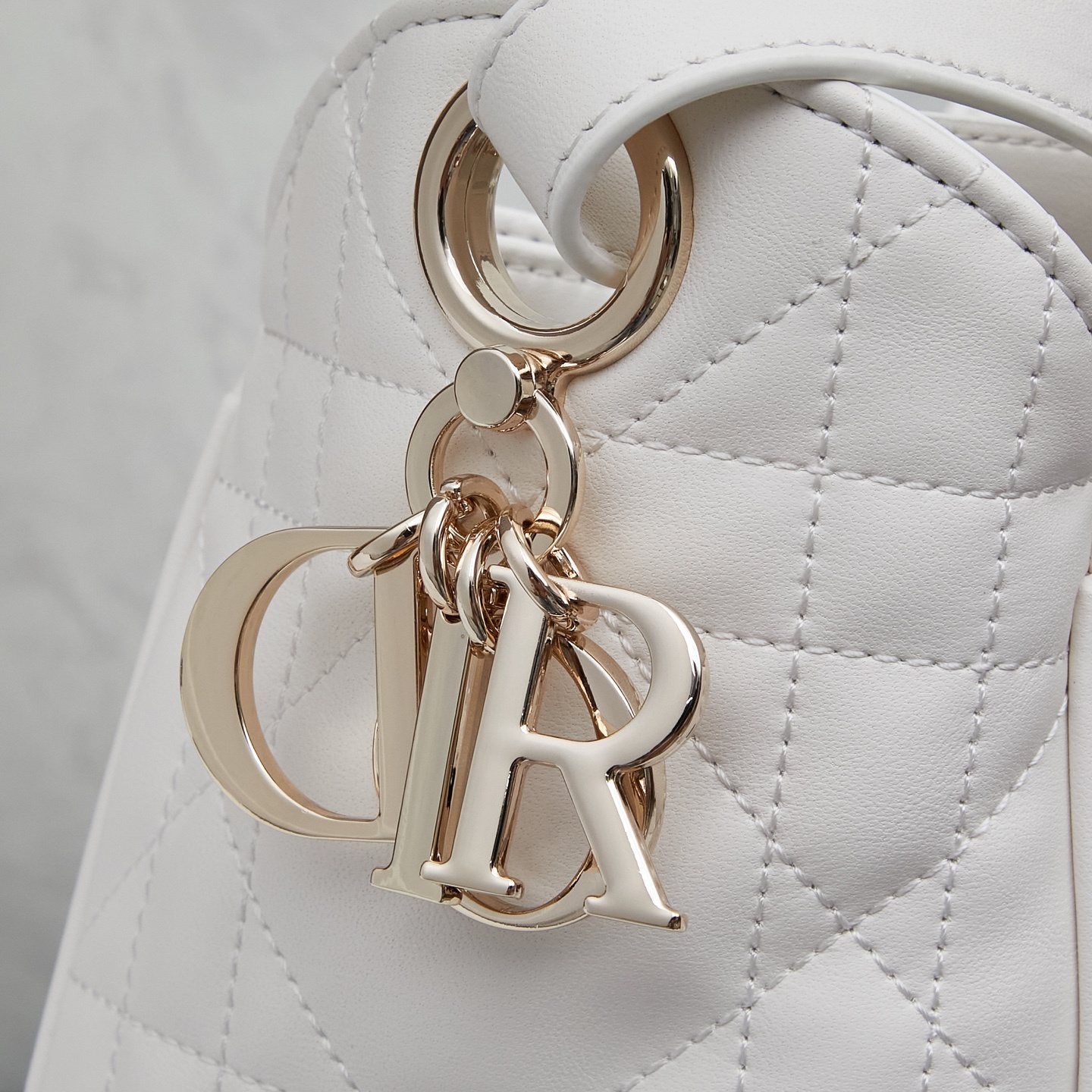 大号款式にはライトゴールドメッキの金属製D.I.O.R.チャームを配しました。シャープな彫刻と控えめな光沢が、ラムスキーの地味さに「力強いアクセント」を添え、「さりげないブランドアピール」を実現。チャームの揺れる動きが、歩くたびに「優雅なリズム」を生み出します。