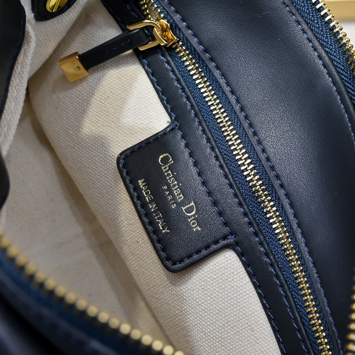 本体の主要素材にはグレー基調のD字布(灰D布)を採用し、一部にディオールの象徴「オブリークプリント」をブルーで施した生地を組み合わせました。D字布の丈夫さとオブリークプリントのクラシックさが共存し、「カジュアルな装いにも知的なエレガンスを添える」質感を生み出します。高密度に織られた生地は「軽量性」と「耐久性」を両立し、日常使いの擦れや汚れにも強く、「新品のような見た目」を長期間保ちます。