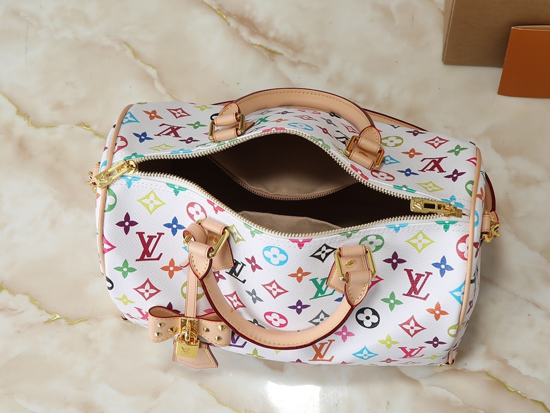 【ルイ・ヴィトン × 村上隆】Nano Speedy 手袋|33色モノグラム×牛革縁取り 白三彩・黒三彩デザイン 世界的爆発的人気 セレブ愛用 30cm大容量