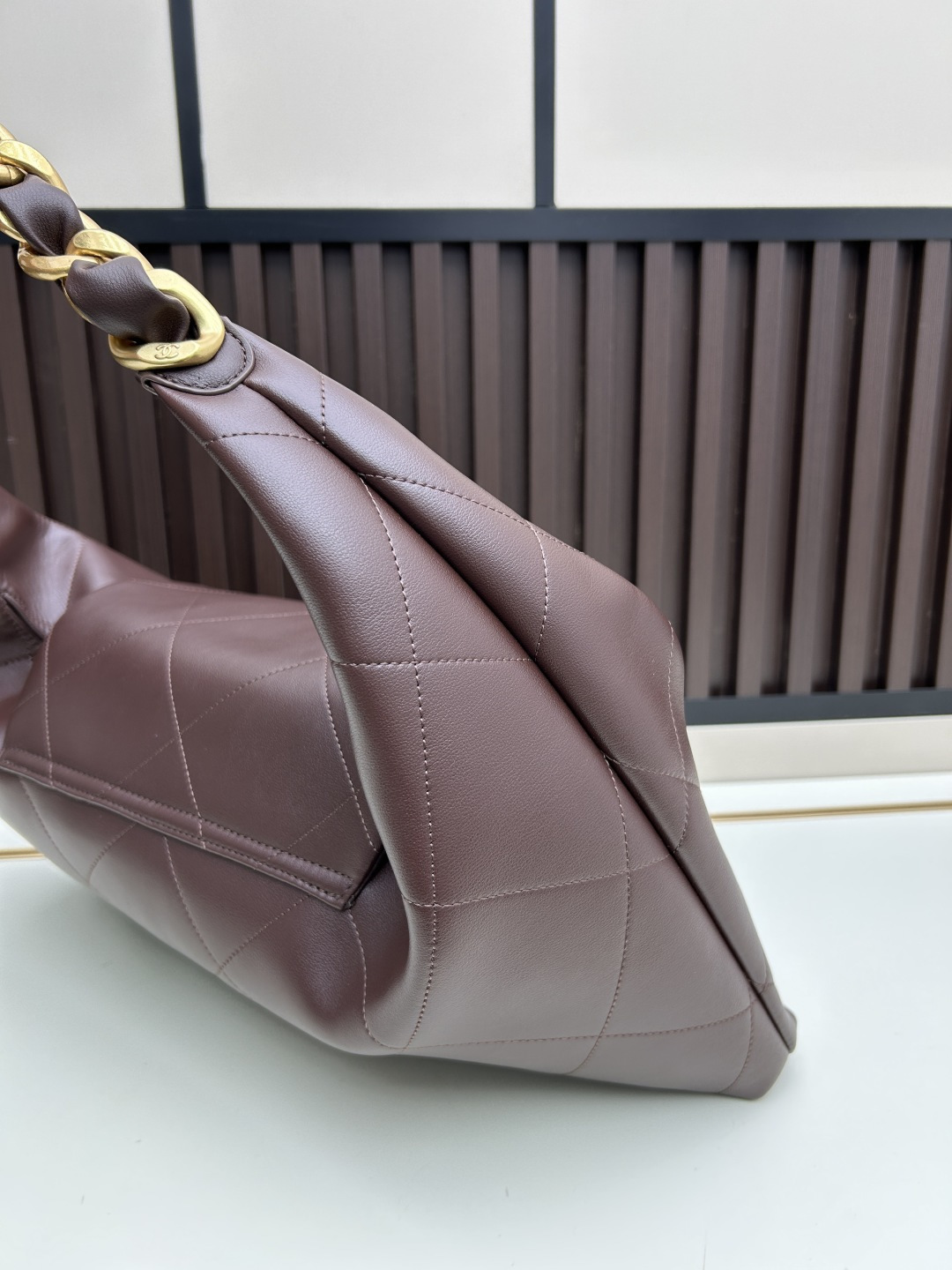 シャネル 25K ヒッピー風ホーボー マキシバッグ|秋冬ランウェイモデル|太めゴールドチェーンで放つ圧倒的オーラ