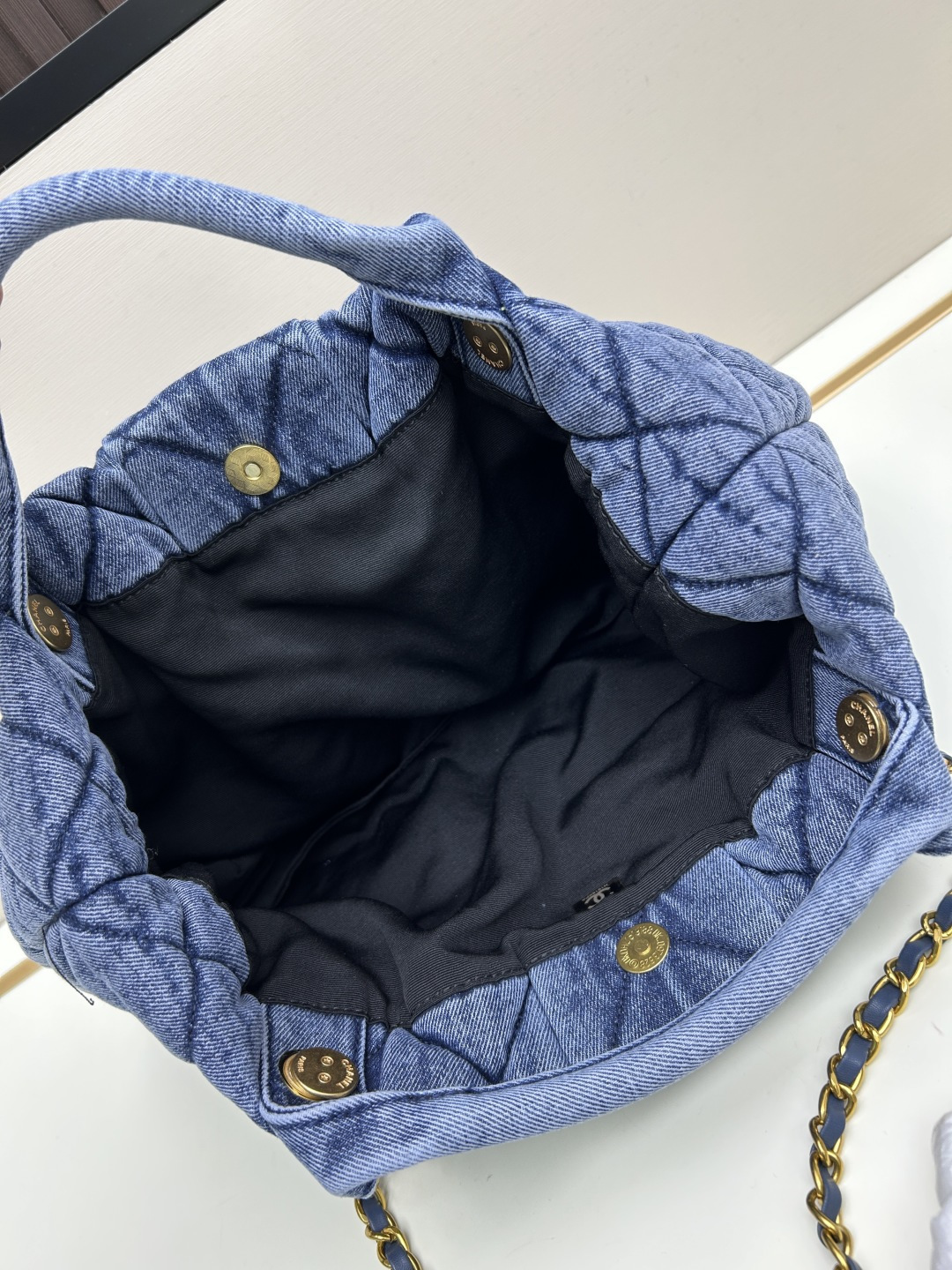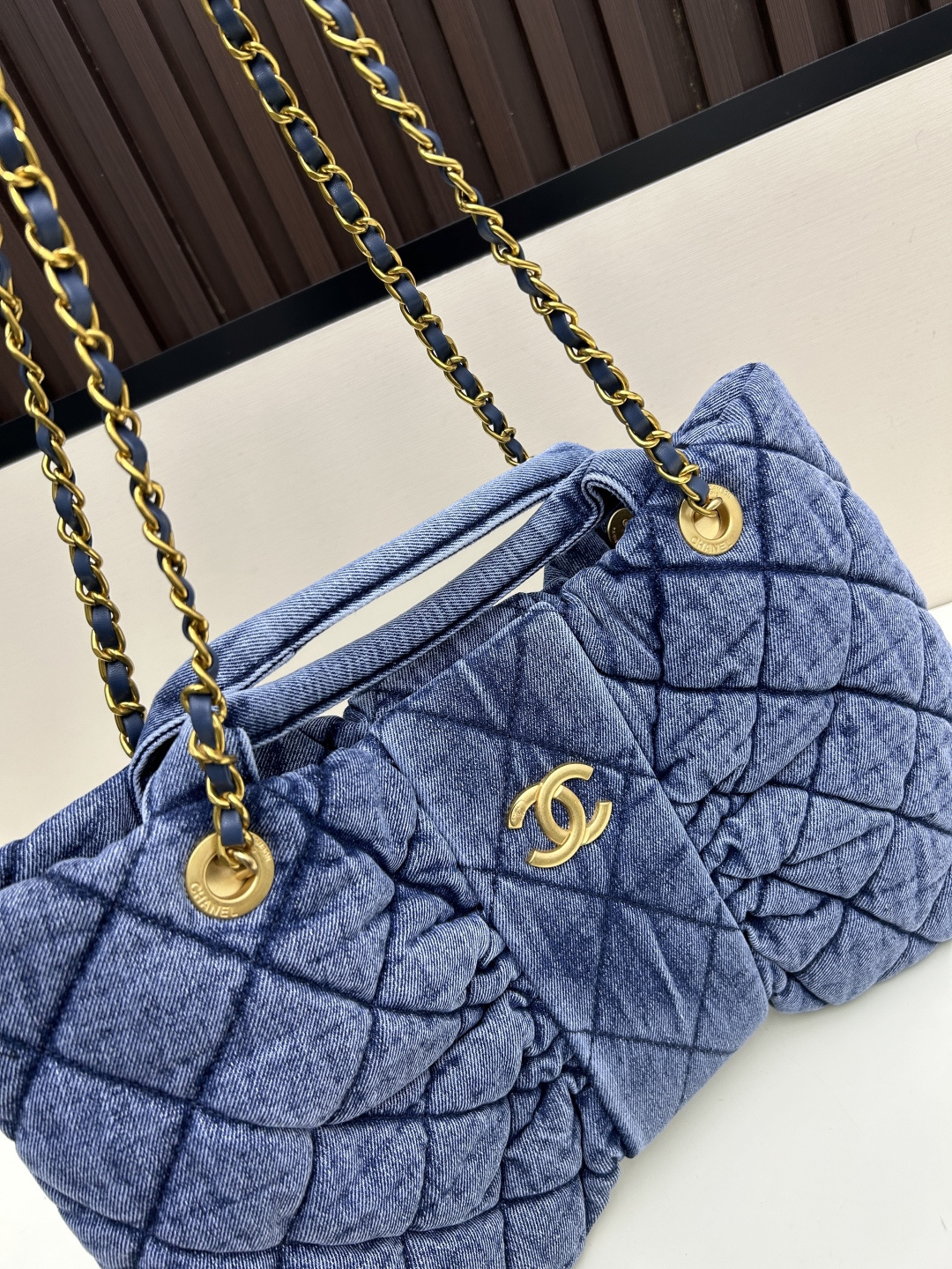 シャネル 25K ウォッシュドデニム ボウタイハンドバッグ|クラシックダイヤモンドキルト×ふんわり羊革|乙女心をくすぐる甘辛スタイル