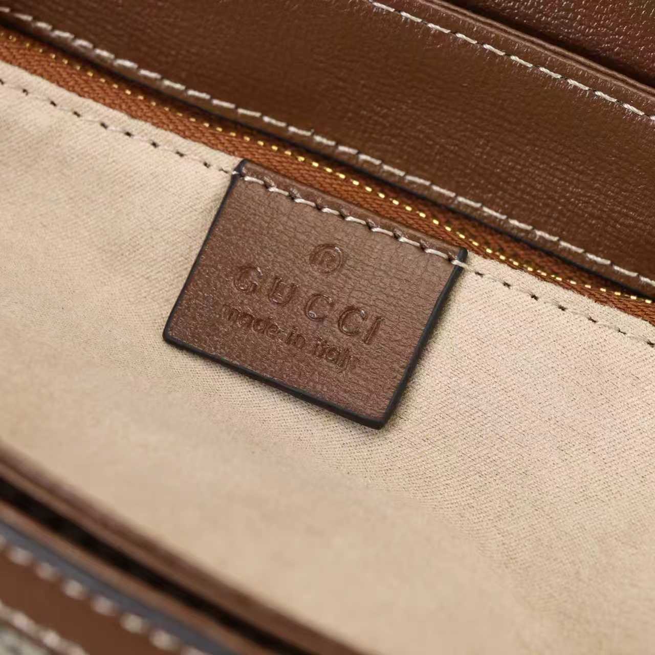 ・モノグラムキャンバスの遺産:1930年代に誕生したグッチの象徴的素材「モノグラム」は、高密度コットン×ポリエステル混紡により「軽量さ」「耐久性」「撥水性」を兼ね備え。立体的なGGパターンが光を反射し、ブラウンパイピングとのコントラストが「クラシックな枠組み」を際立たせます。使い込むほどに「深みのある風合い」に変化する経年変化の楽しみも魅力です。