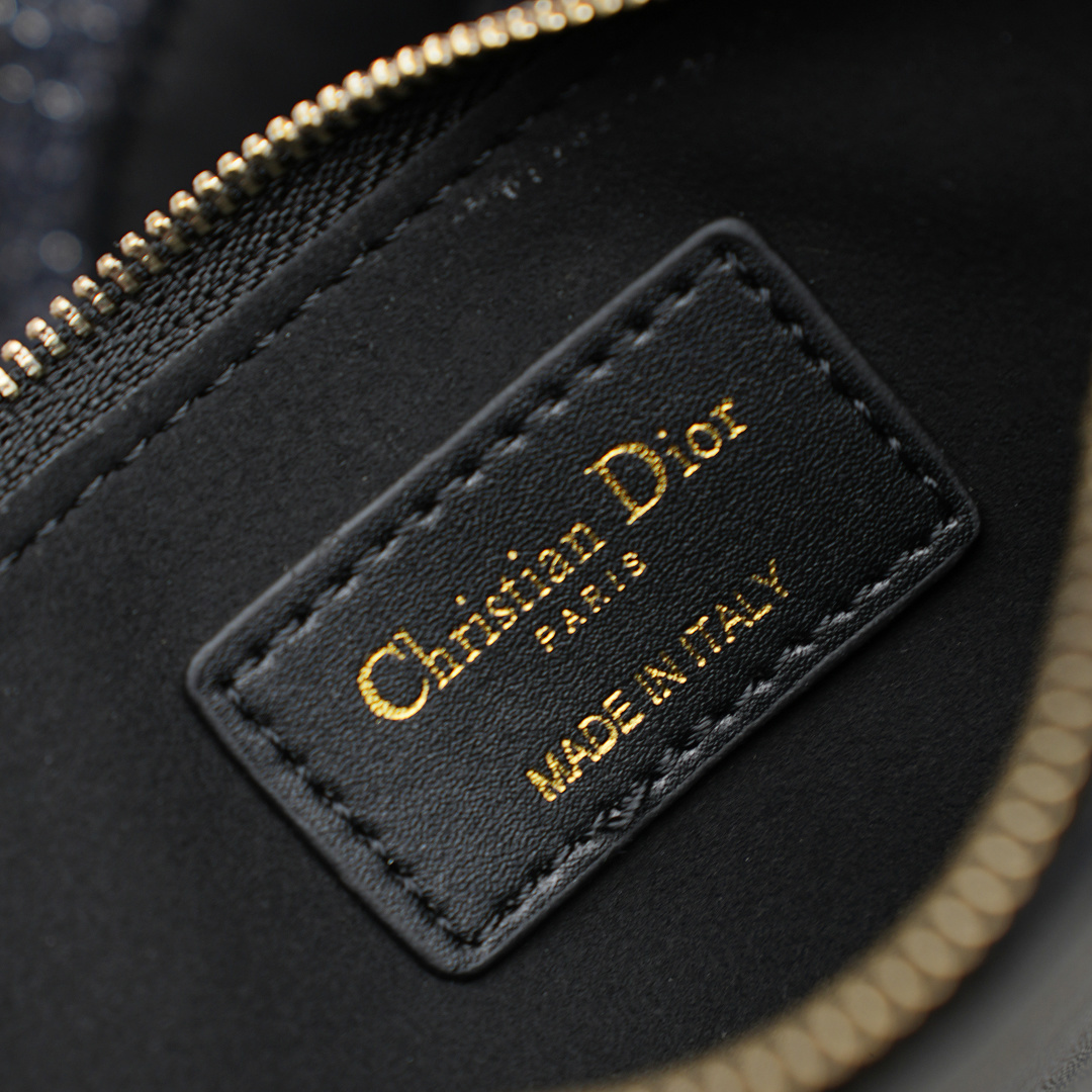 ・CDロックD字ノブ留め具の象徴性:正面中央のCDロック留め具は、Diorの「D」字をノブ状にデザイン。シルバートーンメタルの磨き上げられた光沢が「遠くからでもディオールとわかる」存在感を放ち、「片手での滑らかな開閉」を可能に。留め具周囲のChristian Dior Paris刻印が「ブランドの誇り」を静かに主張。