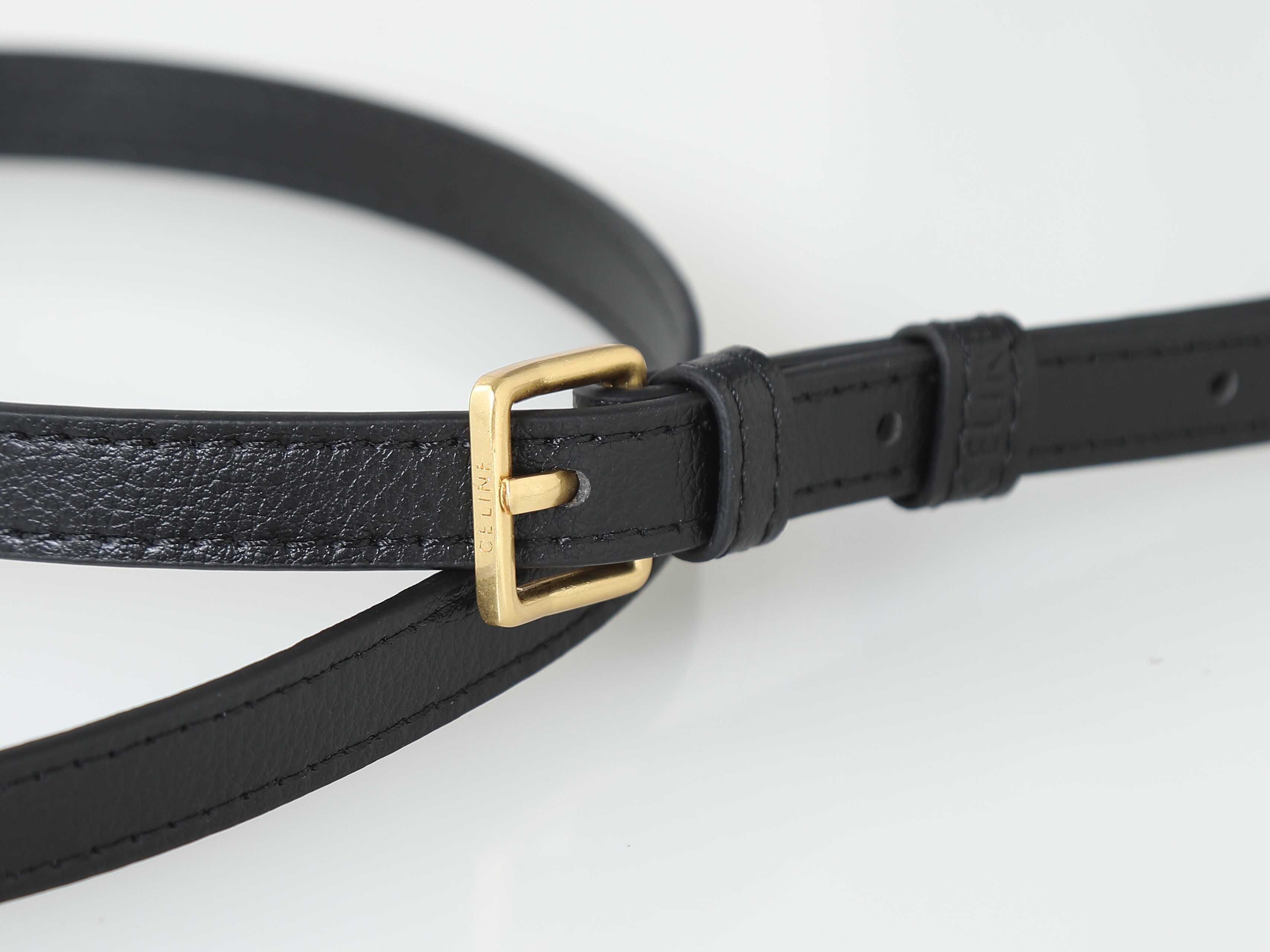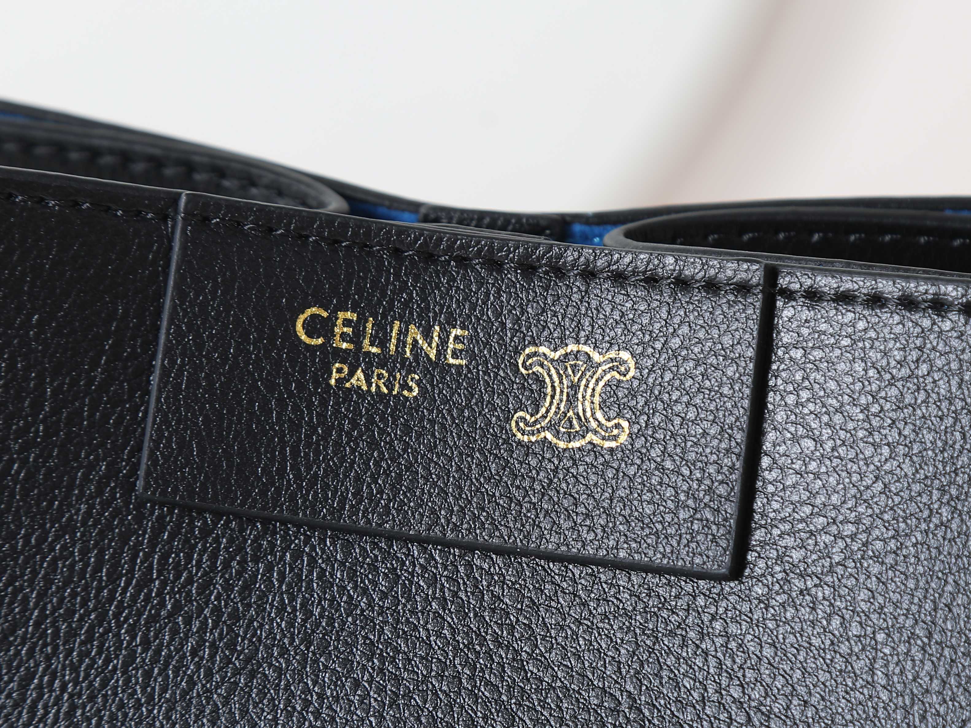 ・ブラック牛革の芸術:本体に使用したフランス産牛革は、セリーヌ工房が厳選した「しっとりとした肉厚感」が特徴。表面の微細な自然なシワが「使い込むほどに深まる味わい」を予感させ、「日常の擦れに強い耐久性」を両立。染色工程で「漆黒の深み」を再現し、「光の当たり方で浮かぶ繊細な光沢」が「控えめなラグジュアリー」を主張。