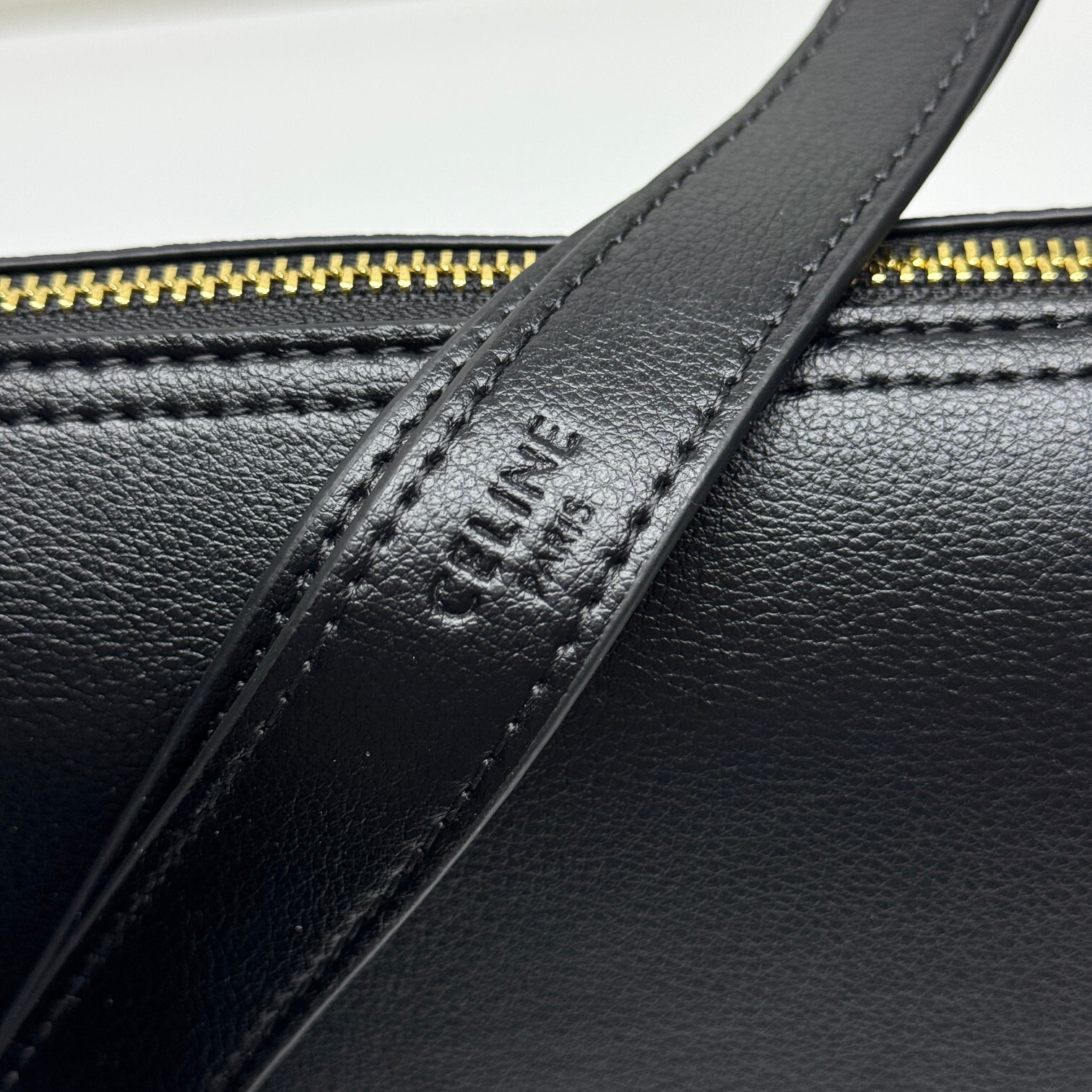 ・上質牛革のレトロ品格:本体全面に使用したフランス産牛革は、セリーヌ工房が厳選した「しっとりとした肉厚感」が特徴。表面の微細な天然シワが「使い込むほどに深まる味わい」を予感させ、「経年変化でも色褪せにくい深み」を染色工程で再現(「レトロ感を保ちつつ現代の使用感を追求」)。