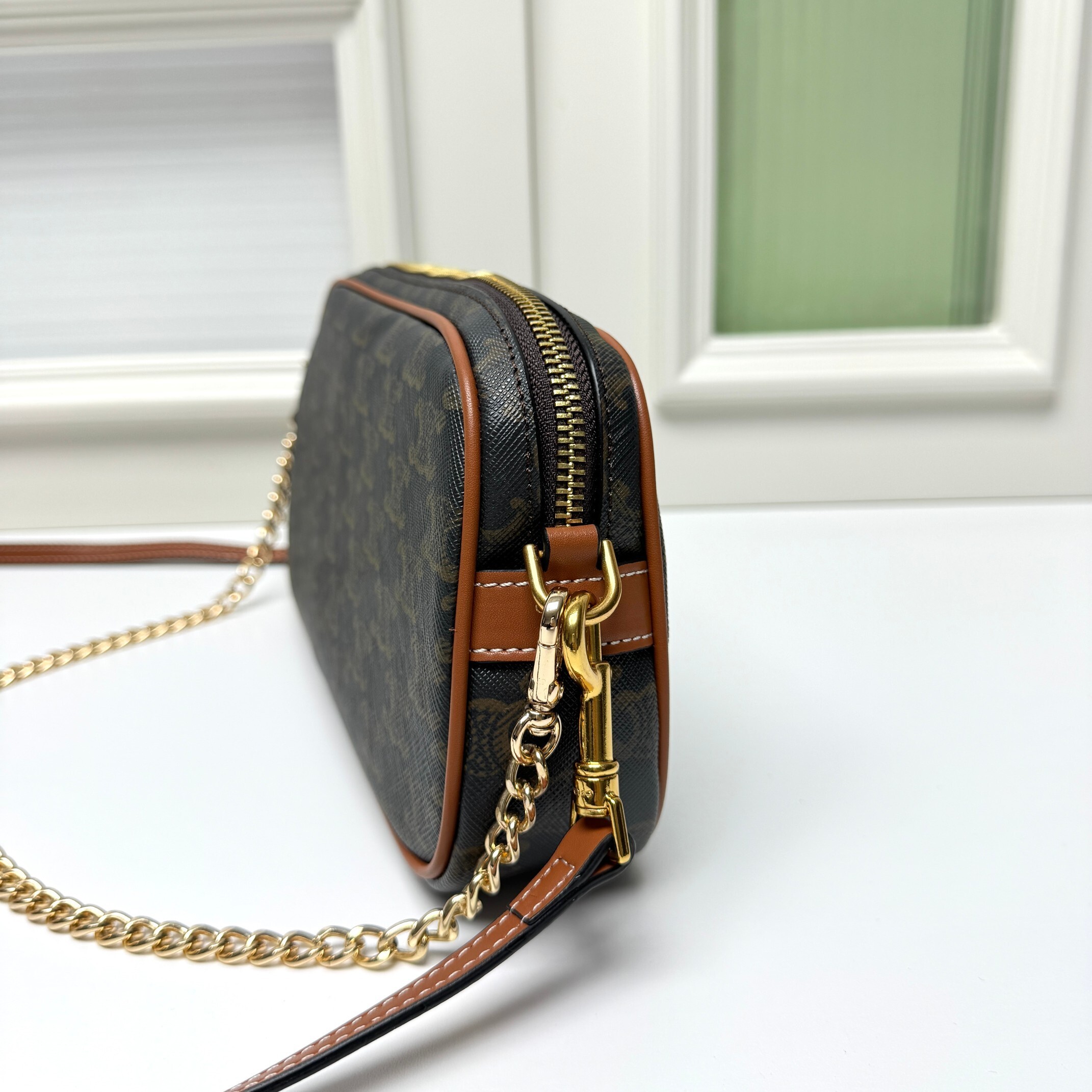セリーヌ CEチェーンバッグ新作|MULTIロゴプリント牛革ハンドバッグ|クラシックモノグラム×皮エッジ|皮/チェーン2WAYショルダー|26×6×13cm|軽量耐造の実用美学