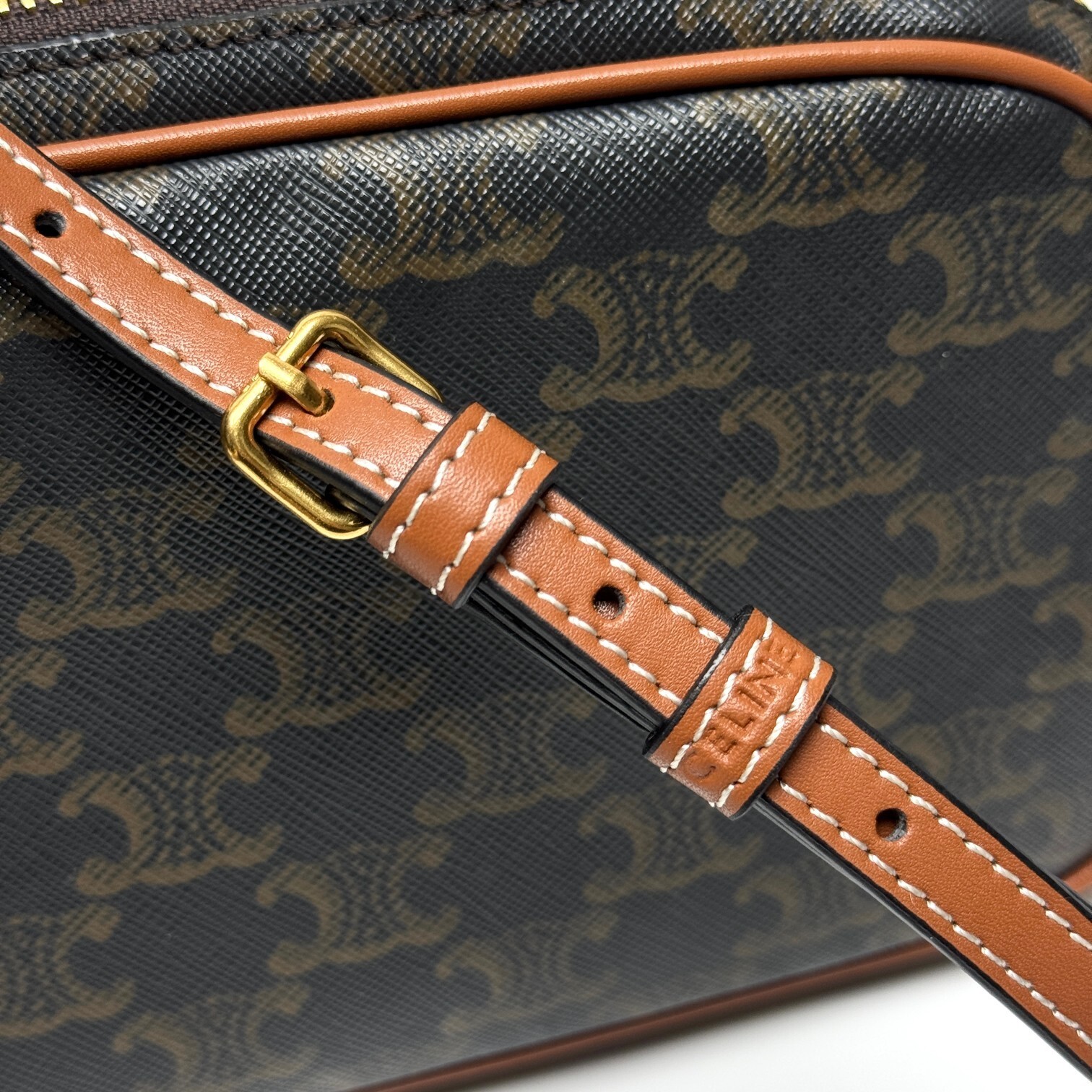 ・MULTIロゴプリント牛革の芸術:本体全面に使用したフランス産牛革は、CELINEの象徴「MULTIロゴ(多色ロゴ)」をプリント加工。老花(モノグラム)の幾何学模様が「遠くからでも視認できるアイコン性」を確立し、「使い込むほどに深まる光沢の変化」が「経年変化の楽しみ」を予感させる(「经典的老花面料」の所以)。