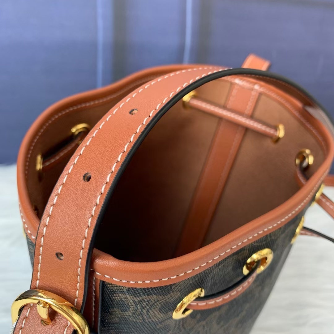 セリーヌ ロゴプリント スモール ドローストリングバッグ|合成皮革/牛革|斜め掛け/肩背|ドローストリング皮革ベルト×調節肩带(50cm)|14×21×14cm|静寂美学の迷你万能アイテム