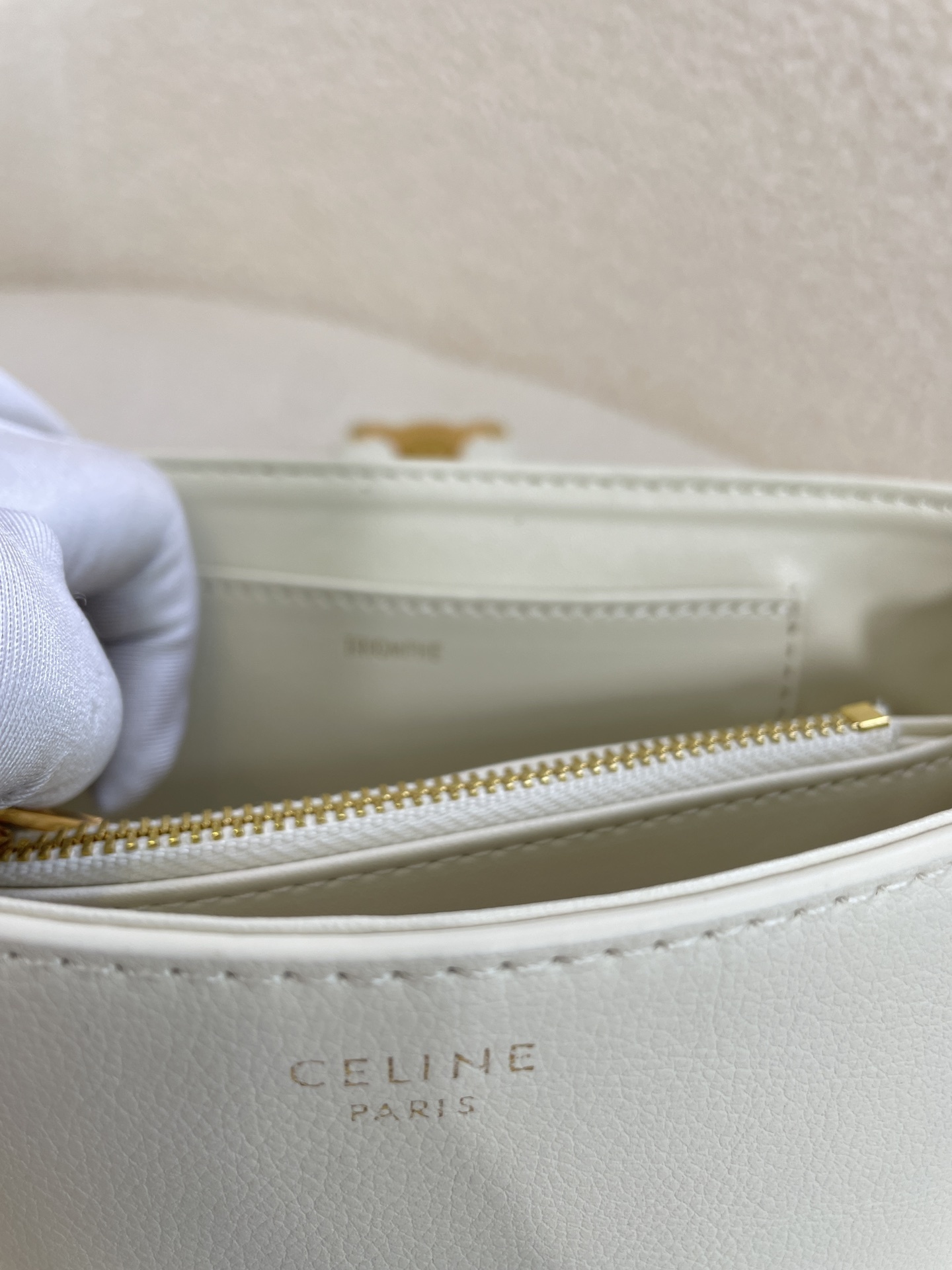 ・金属TRIOMPHEロックの象徴性:正面中央に配されたゴールドトーン金属製TRIOMPHEロック(凱旋門モチーフ)が「一目で識別できるブランドアイデンティティ」を確立。ロックの「立体的な彫刻感」が「精巧な包身にアクセント」を添え、「セリーヌの正統性」を担保(「标志性金属TRIOMPHE锁扣 点缀精巧包身」の所以)。