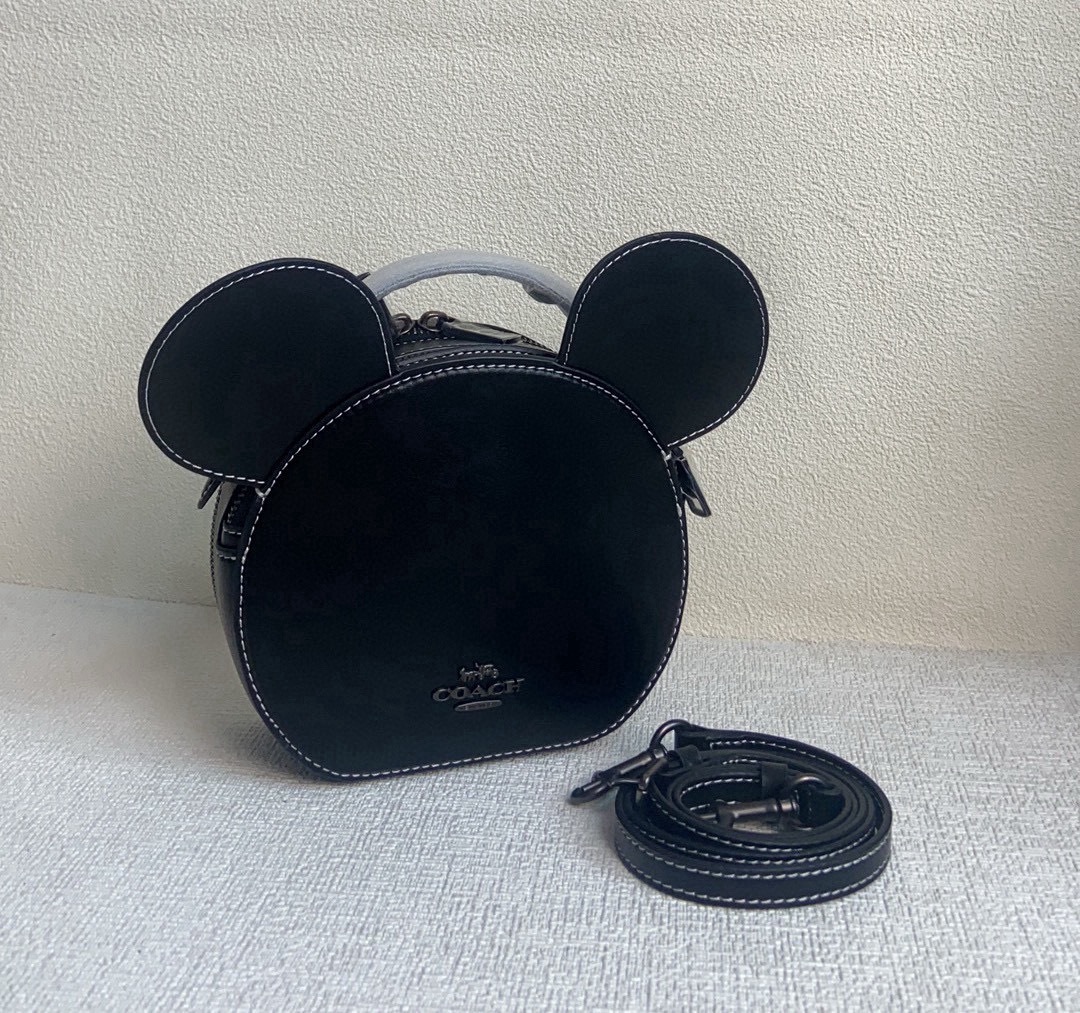 コーチ(COACH)×ディズニー夢のコラボキャンティーン ミッキー系 円盤バッグ,は「クラシックなCanteenシルエットに、ミッキーの遊び心と双拉链の実用性を融合した限定合作款」です。約18cm×15.5cm×6.5cmのコンパクトな円盤シルエットに、「ミッキーのシルエットプリント」「両側ファスナーのスマート収納」「コーチ伝統のレザー質感」を配し、「持つたびに『童心を呼び覚ます活力感』と『スタイリングの主役級アクセント』を感じる喜び」を届けます。「活力十足,凹造型绝绝子」「双拉链设计,收纳很方便哦~yyds!」と称される所以は、「ミッキーの無邪気な魅力で『どんなコーデも華やかに』し、双拉链で『収納のストレスをゼロに』した点」にこそあります。今季「日常からデートまで、TPOを選ばない憧れの限定コラボ相棒」として君臨します。
