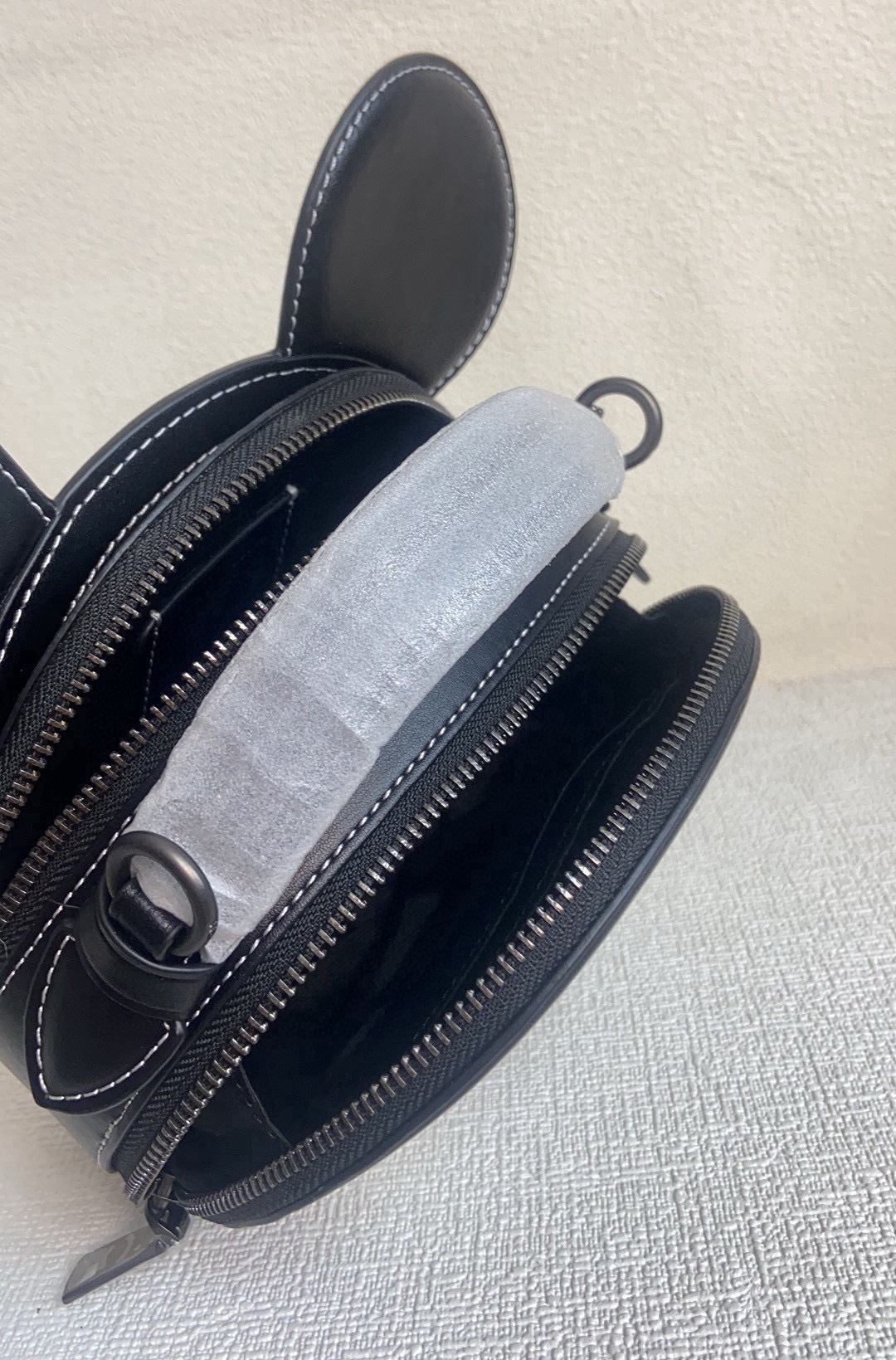 ・コーチ伝統の上質レザー:外面に使用した北米産ソフトレザーは、「アニリン鞣し加工」で「しっとりとした肌触り」と「使い込むほどに深まるアンティーク風合い」を両立。「ミッキーの可愛さとレザーの上品さが同居する唯一無二の質感」(「yyds」の品質所以)。