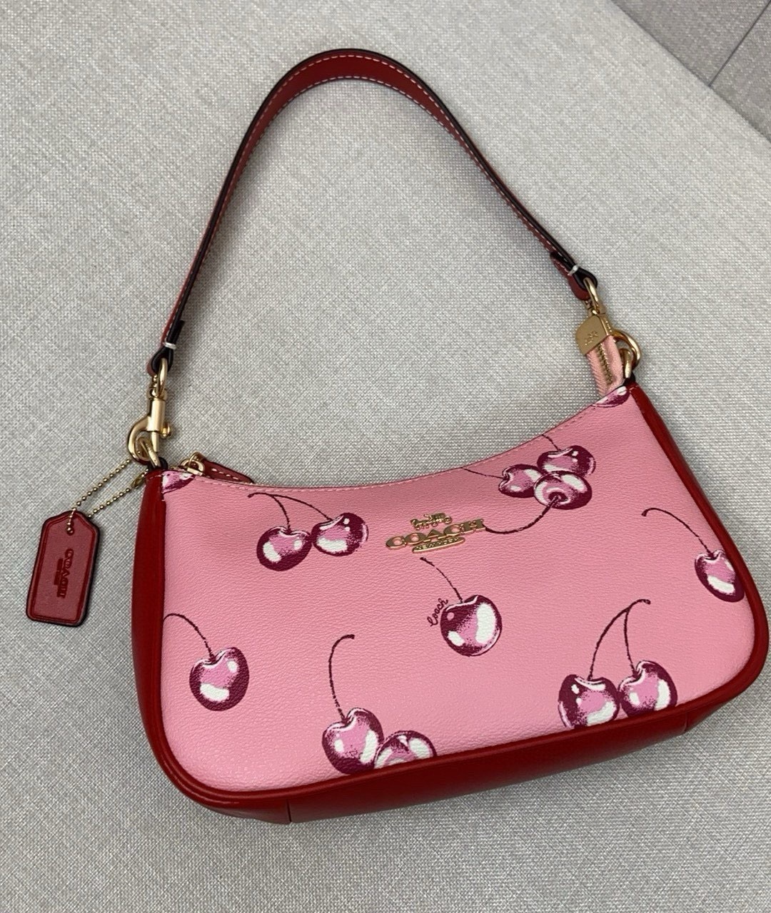 コーチ 5月新作 レッドチェリー柄バッグ CB290|店員さん愛称「チェリー」|24×15×7cm・甘辛可愛い|思わず手が伸びる・必携アイテム