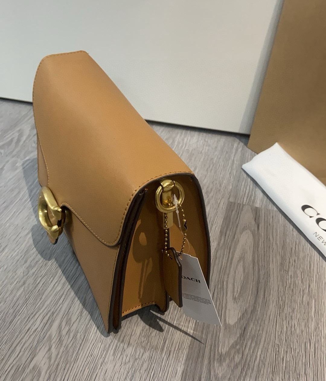 ・ コーチC字ロゴの控えめなアクセント:前面下部に配されたエンボス加工C字ロゴは、「チェーンの主張を和らげ、ブランドのDNAをさりげなく主張」。一目でコーチと識別できる安心感を与えます(「ChainTabbyシリーズ」の伝承)。