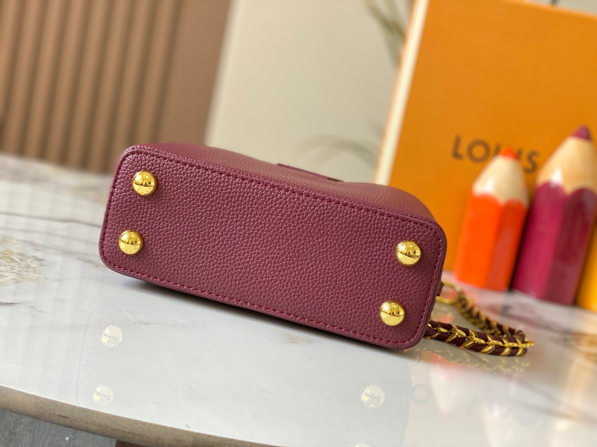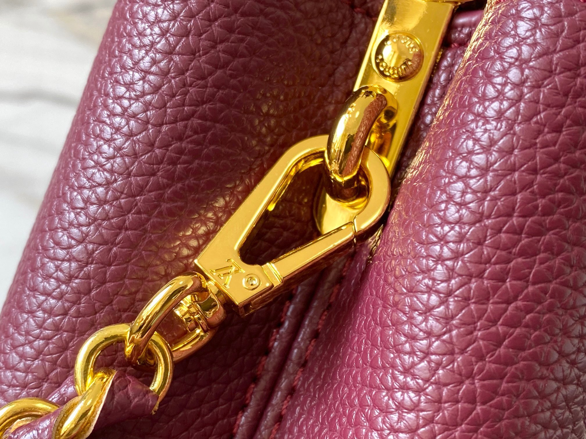 ・ 職人技の証:縫製ラインは「内側に隠れたダブルステッチ」を採用し、「薄型デザインながらCapucinesならではの耐久性」を確保。金具にはLVロゴ刻印を施し、「ブランドのアイデンティティをさりげなく主張」。