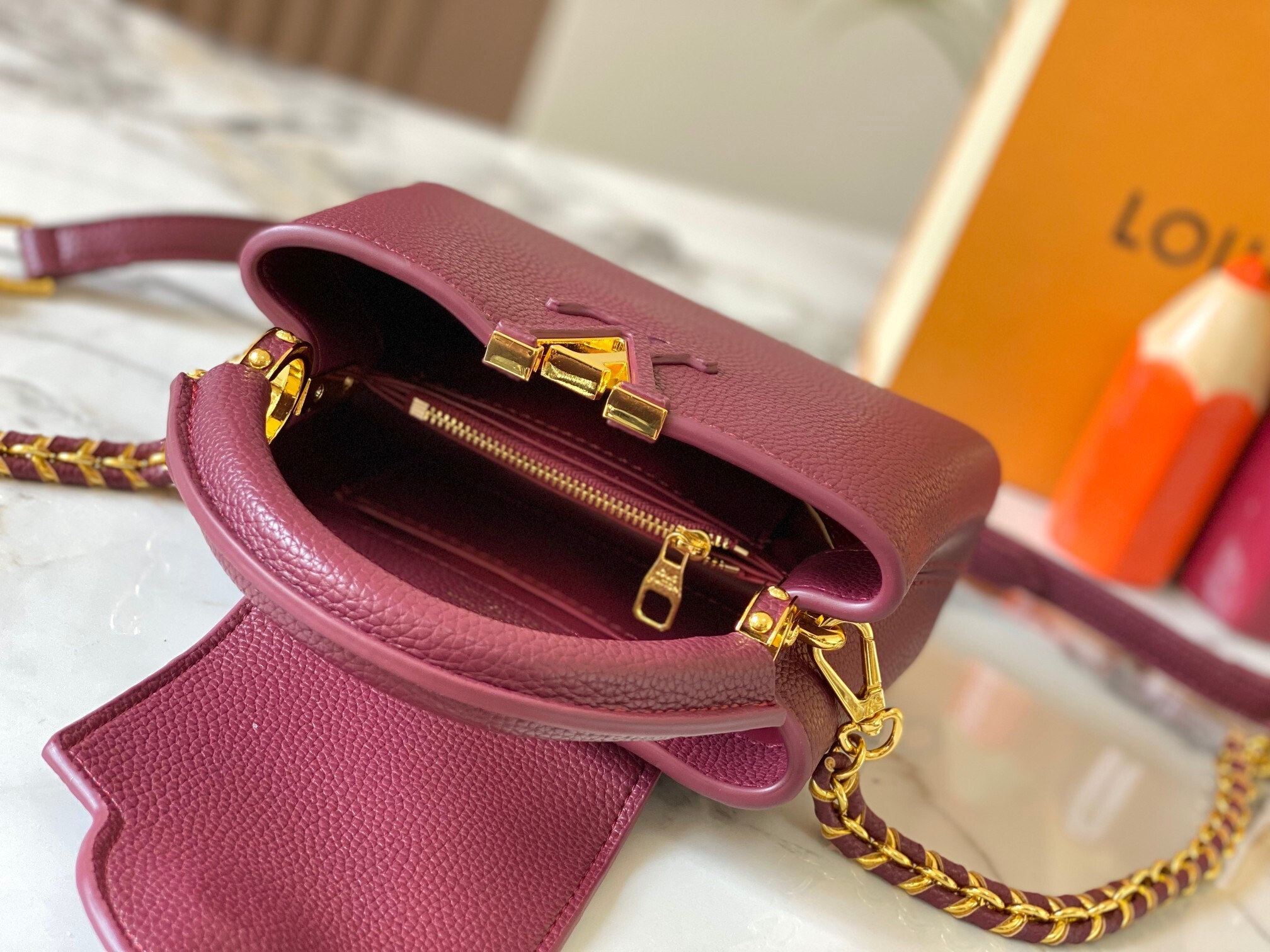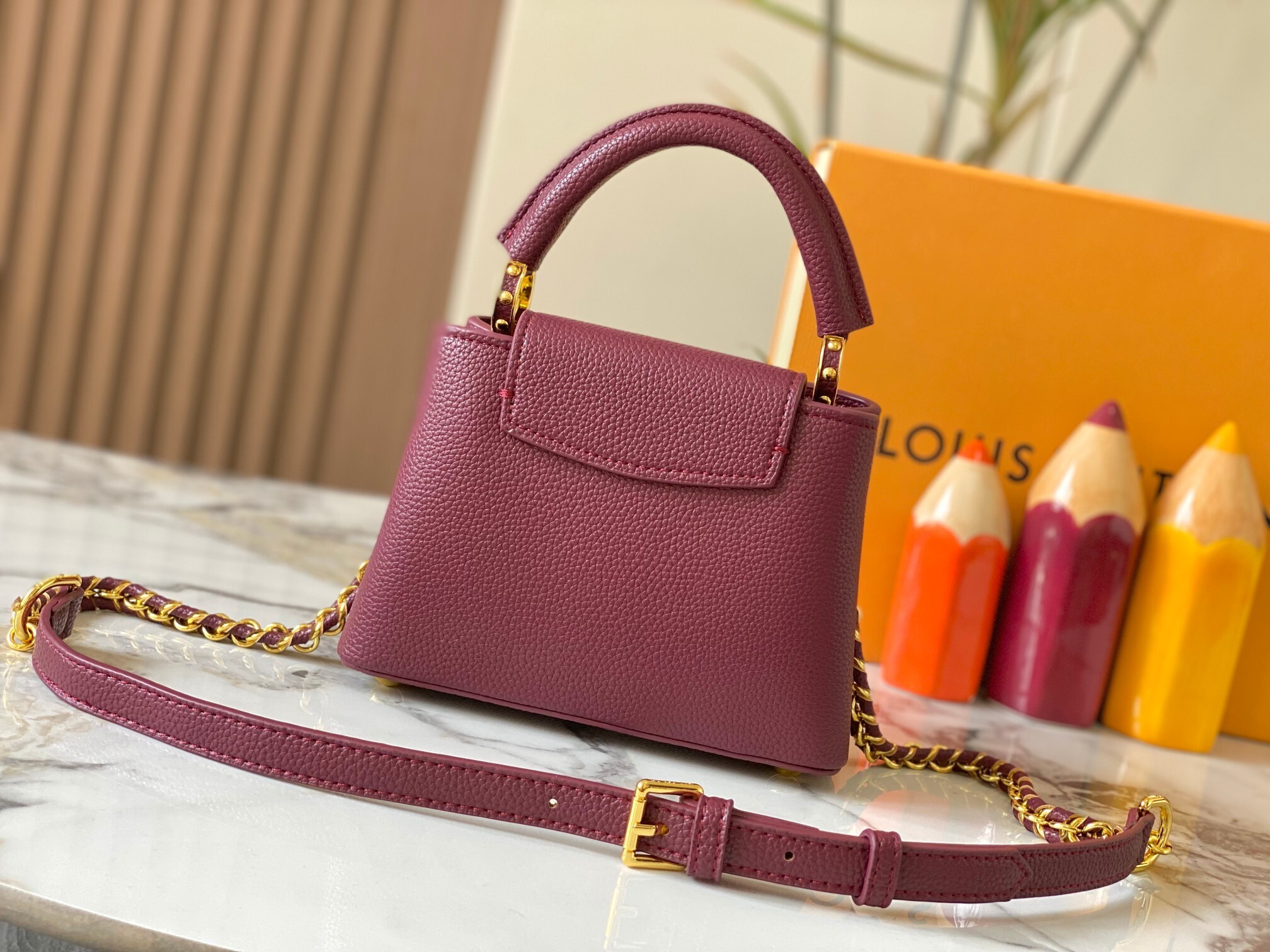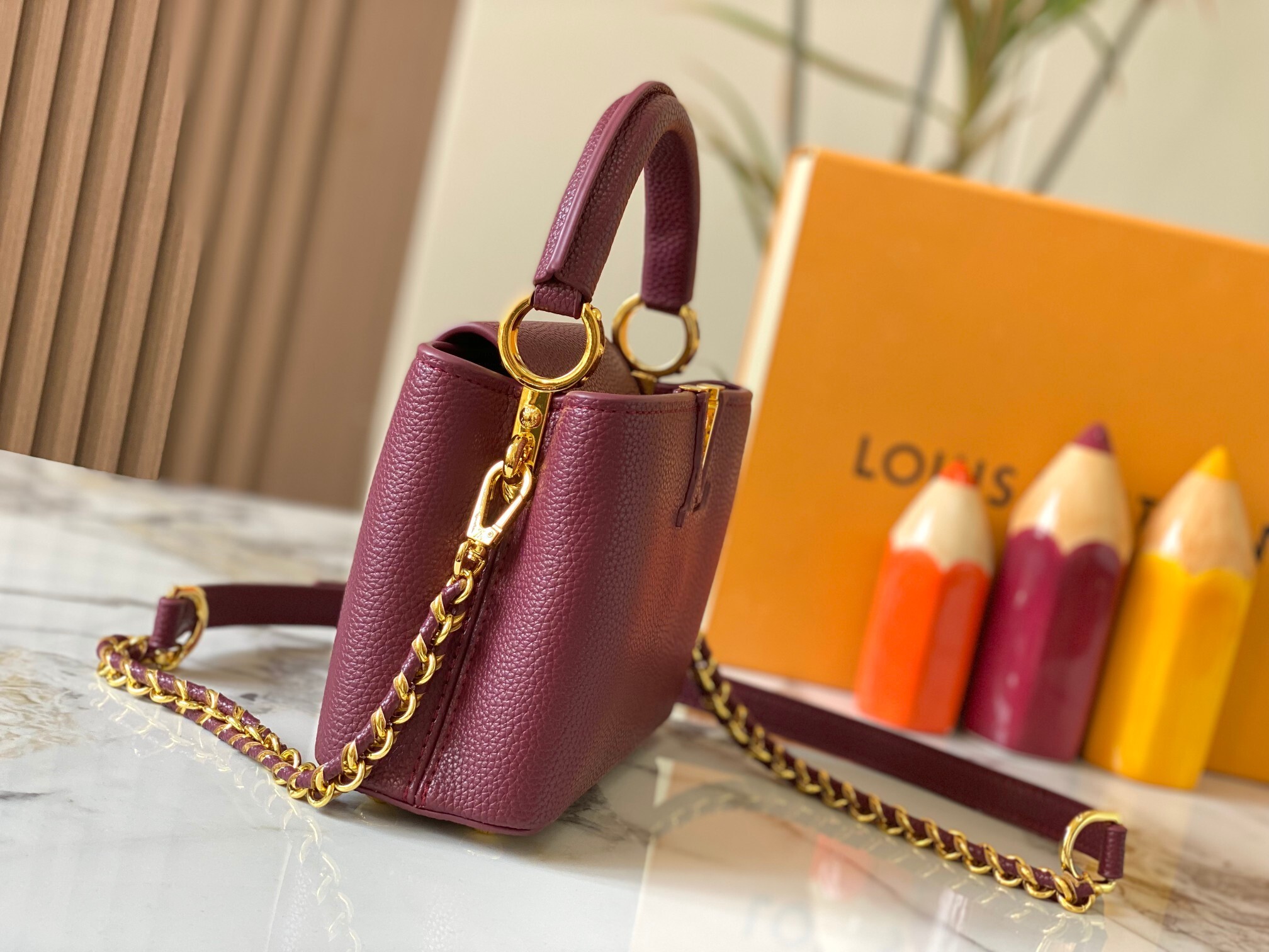 本バッグの魅力は「LVのクラシックDNA」と「Capucinesシリーズの現代的な繊細さ」の完璧な融合にあります。