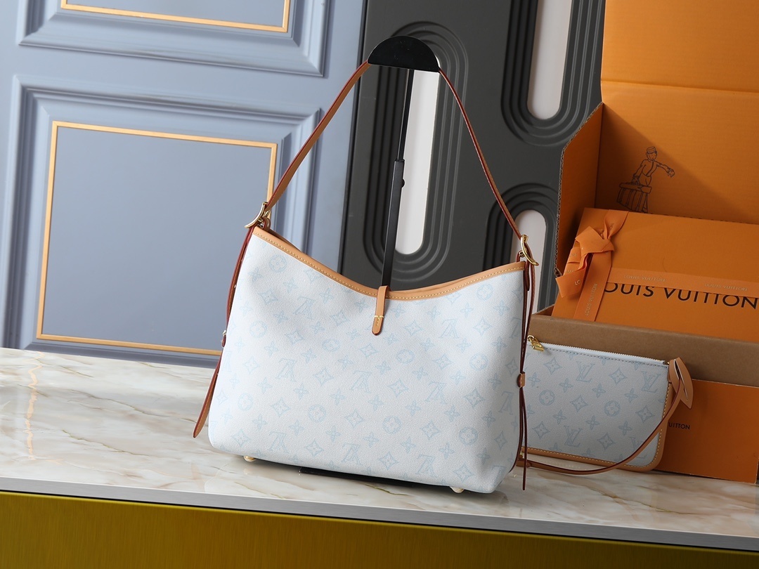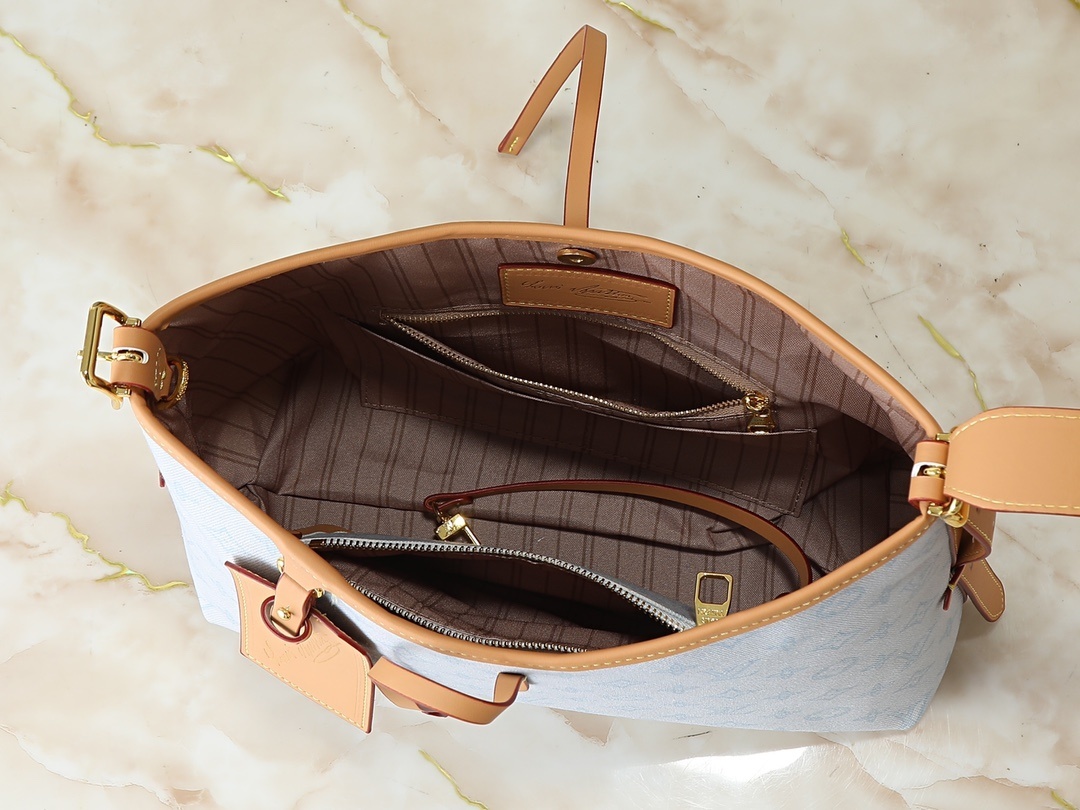 ・ 職人技の証:縫製ラインは「外側に大胆に見せるコントラストステッチ」を採用し、「Carryallシリーズのカジュアルさ」を強調。金具にはLVロゴ刻印を施し、「ブランドのアイデンティティをさりげなく主張」。