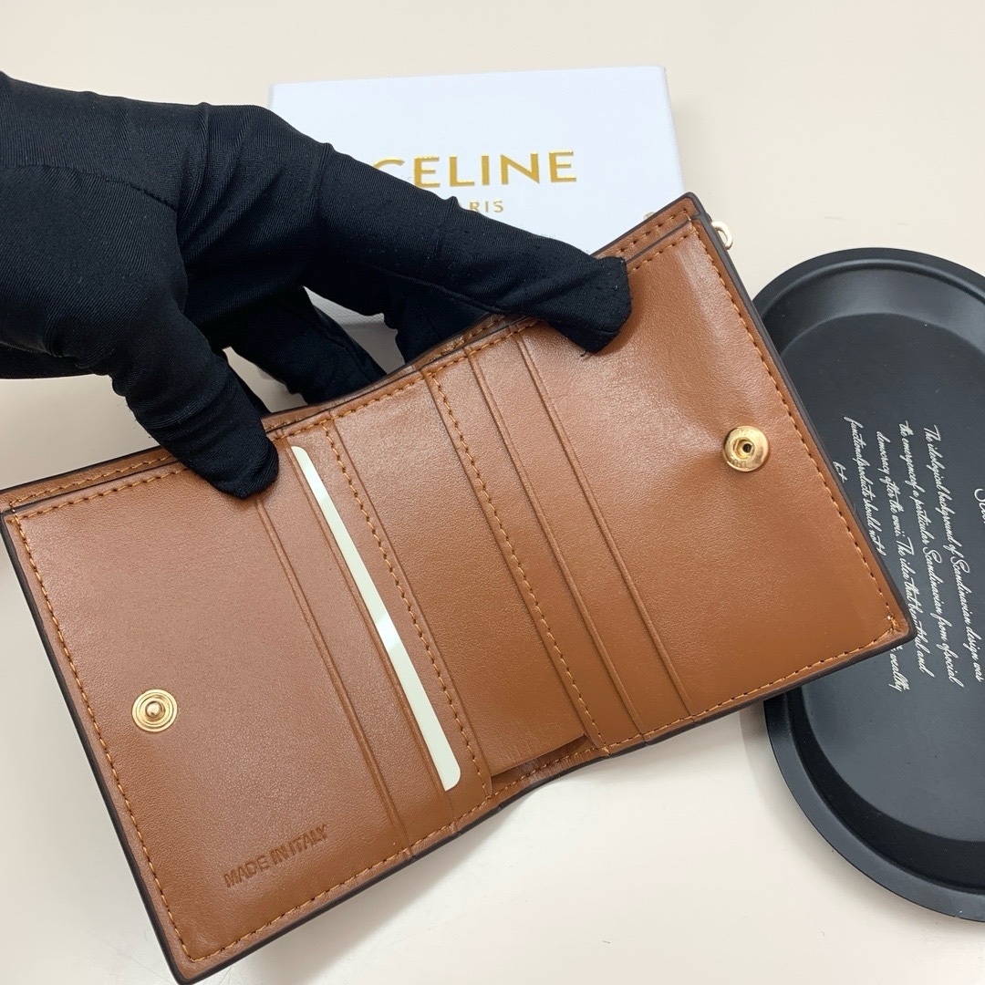 CELINE トライアンフ コンパクト財布|直営店最新作 光沢小牛皮 シンプルで洗練されたデザイン 全4色展開(黒・アプリコット・茶・老花柄