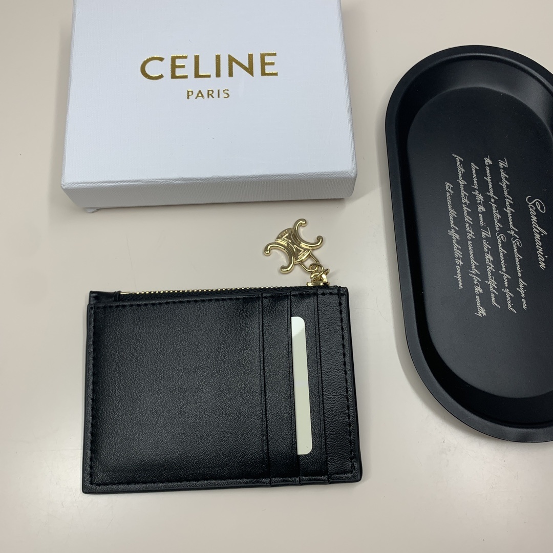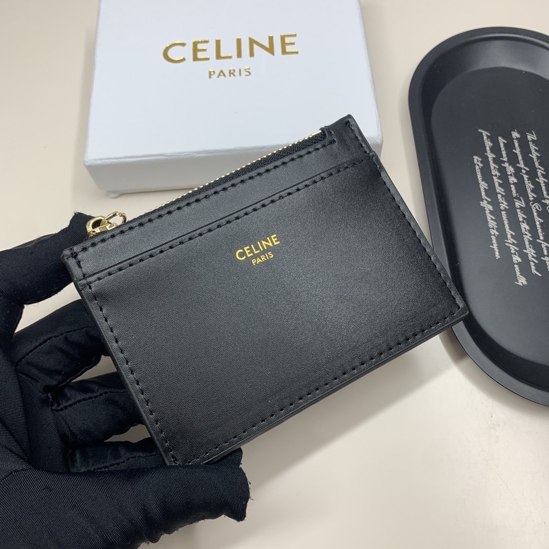 CELINE 新作 光沢小牛皮 ジッパー開閉 超薄型多機能カードケース| 全3色展開(黒・茶・アプリコット)
