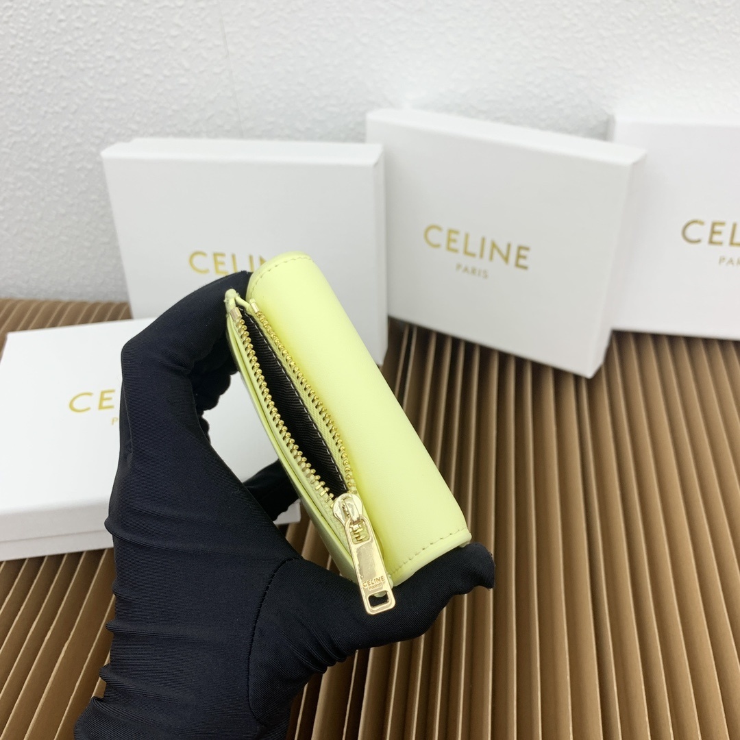 CELINE 光沢小牛皮 小型ウォレット|コインポーチ付き トライアンフメタルスタッド留め 4カードスロット&可拆除ジッパーカードケース(9.5×7.5×3cm)