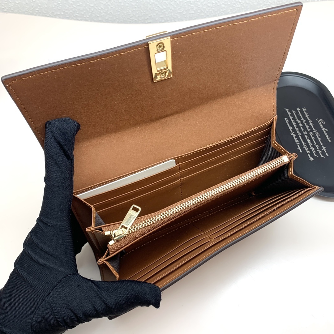 CELINE ショートウォレット|頭層牛革製 全3色展開(黒・アプリコット・茶)19×10×3cm 精巧で洗練されたデザイン