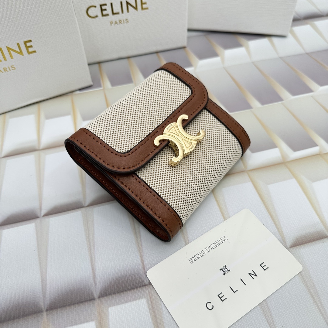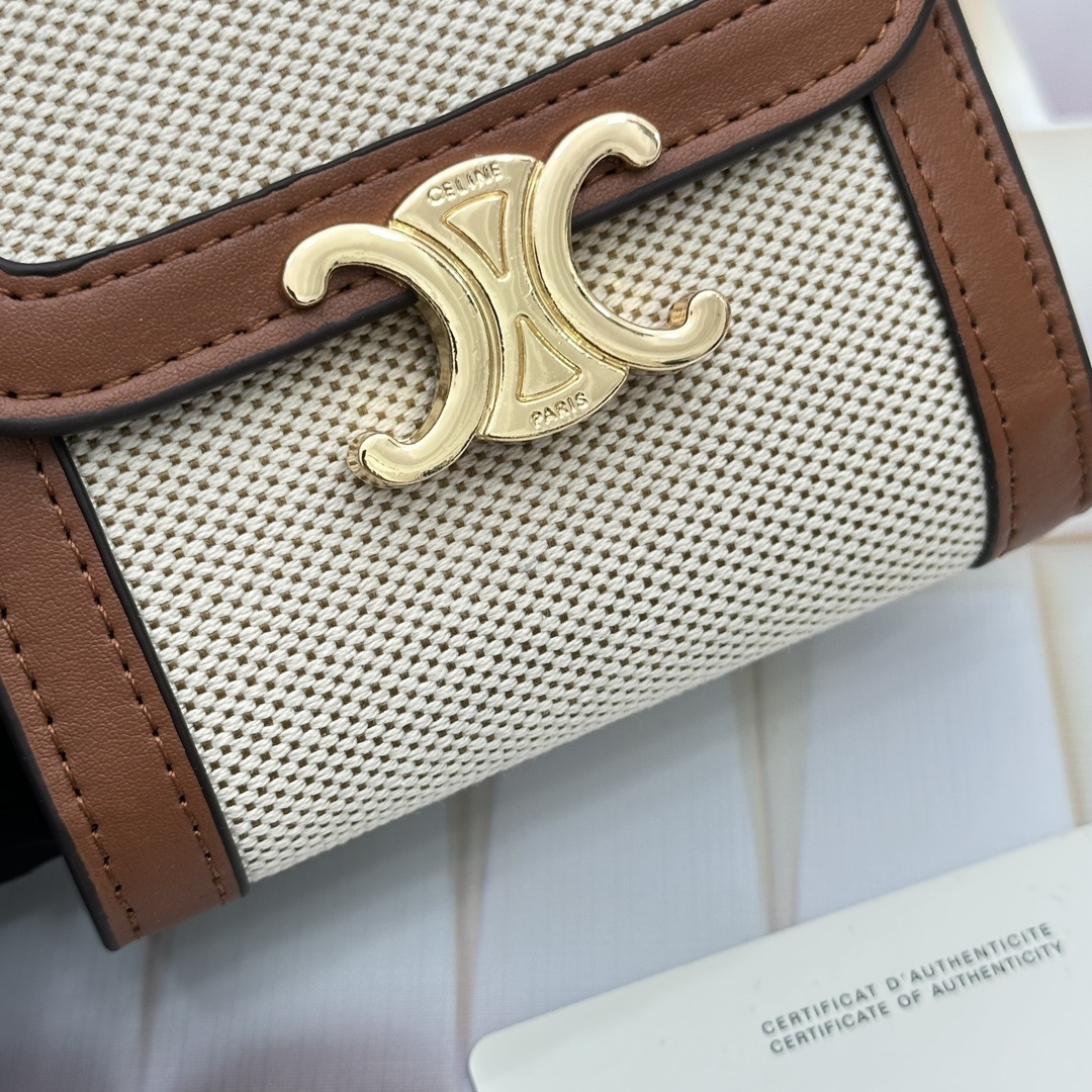 CELINE トリオンフ ミニ ファブリック&カーフウォレット ベージュ/ホワイト