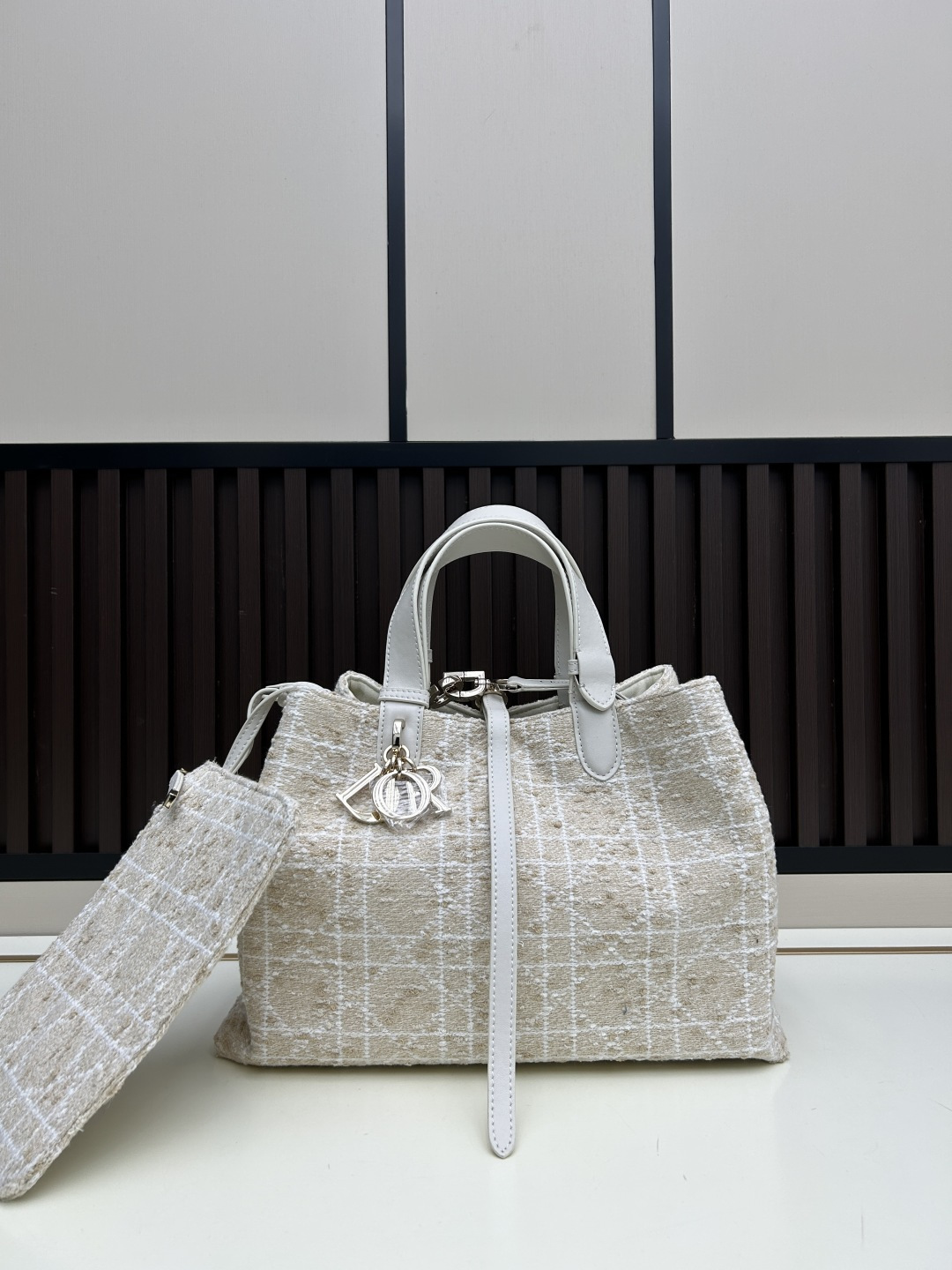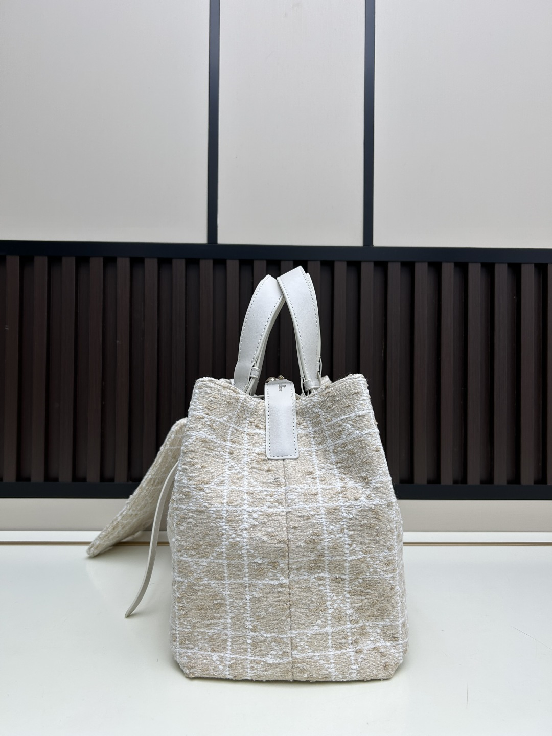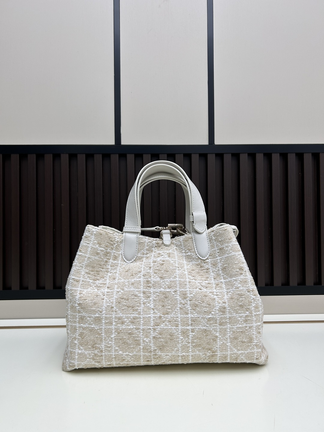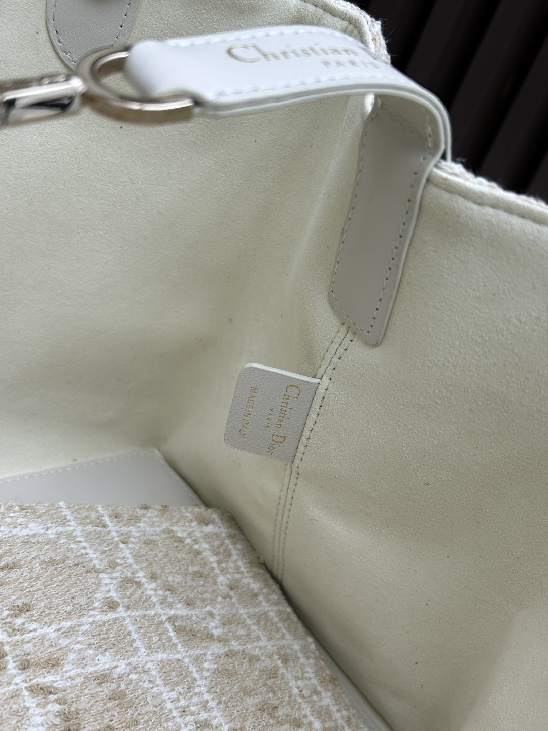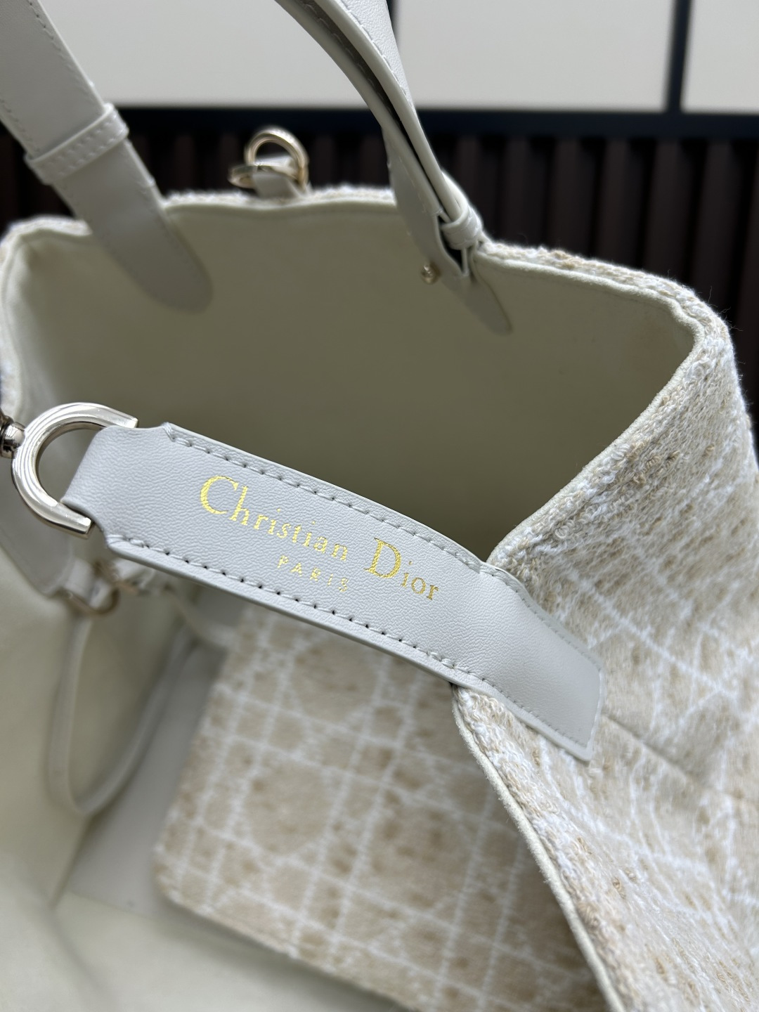 縫製技術:超大型マクロカンナージュ縫い目を施し、ディオールの伝統的な工芸とモダンな機能性を融合。縫い目の密度と均一性が、職人技の高さを証明します。