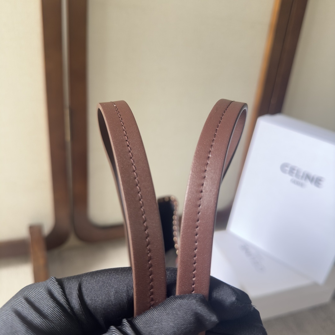 トリオンフモノグラム:バッグ前面に刺繍されたモノグラムは、CELINEの歴史を継承するシンボル。縫い目の密度と色合いで高級感を演出。