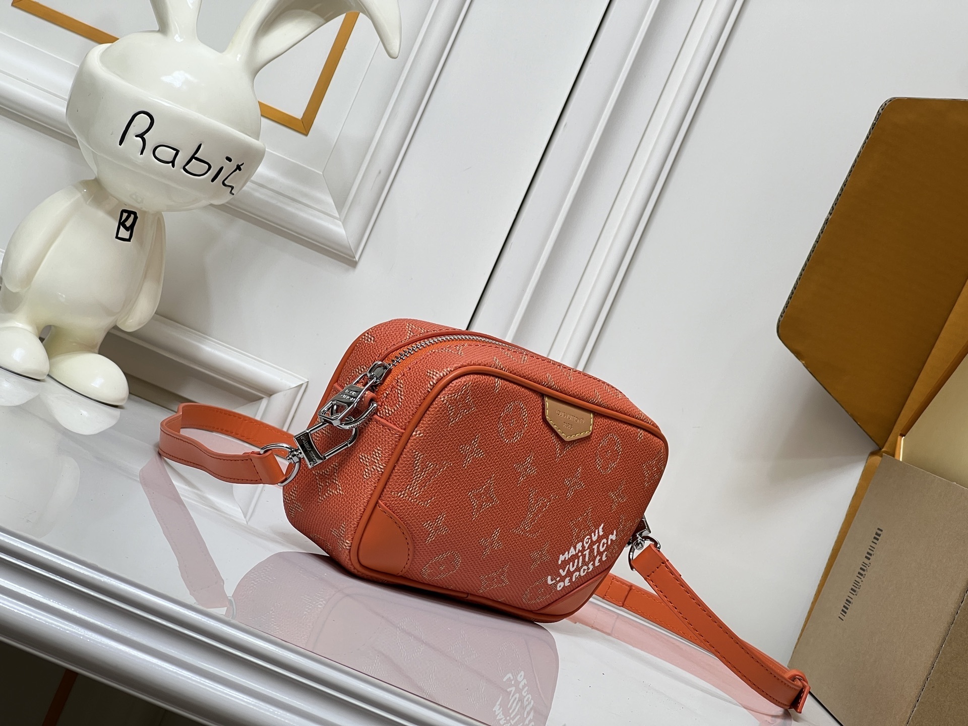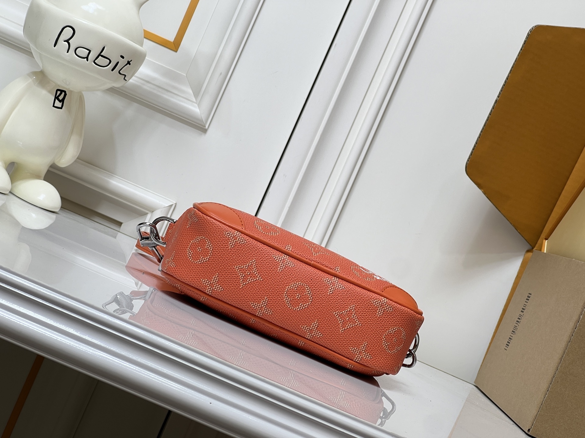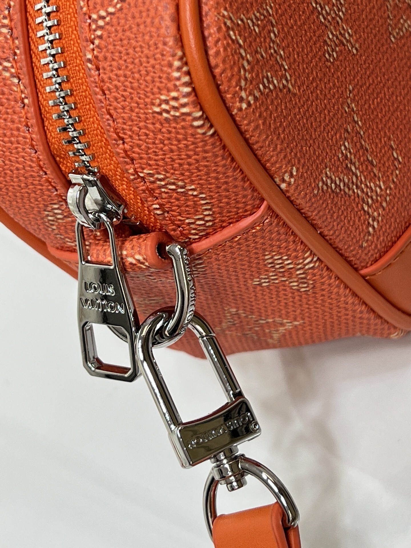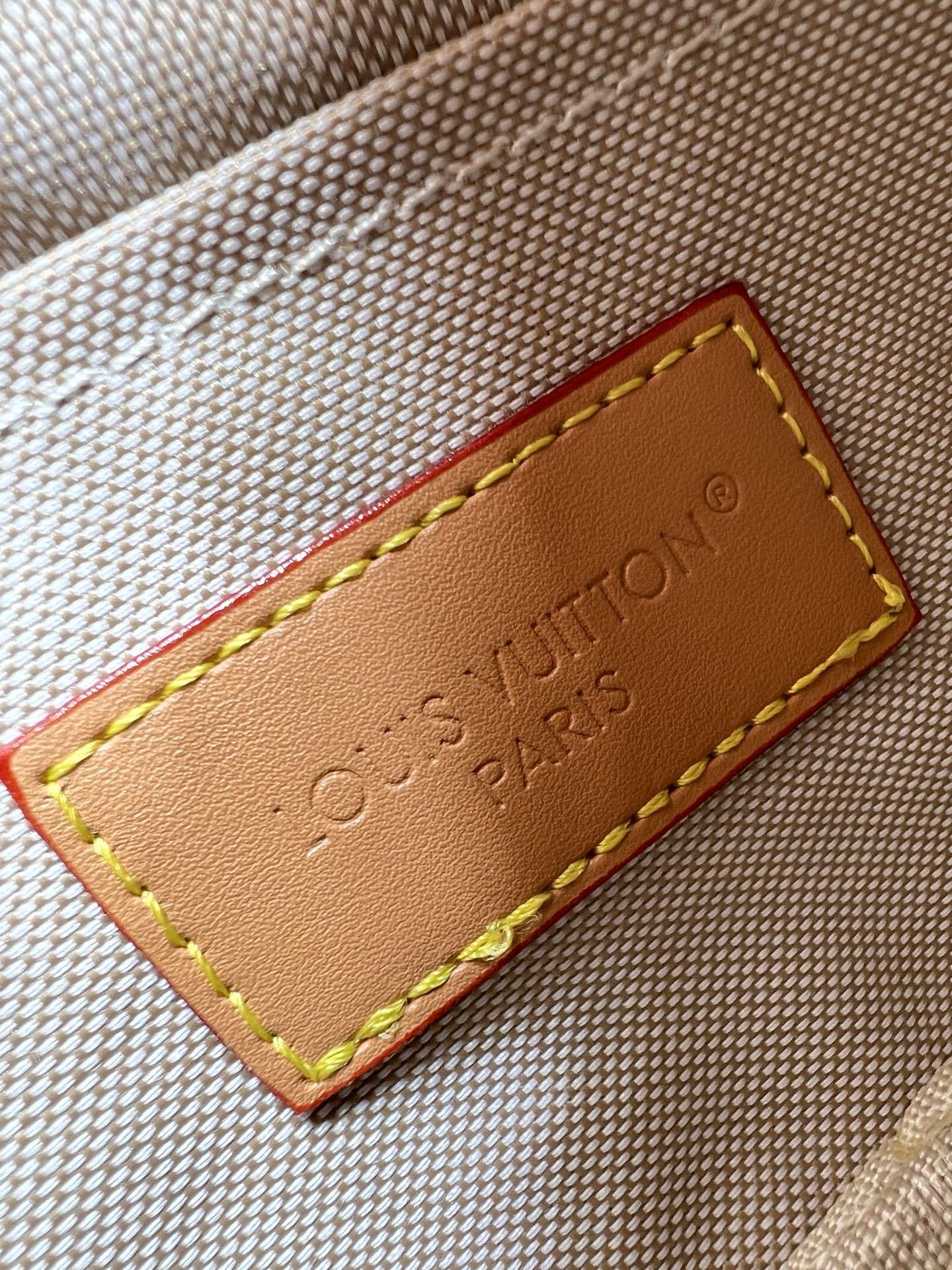 モノグラムキャンバス(防水・防汚加工済み)を主体とし、レトロ調牛革でフロントコーナーとバッグ全体の輪郭を強調。革の質感と帆布の軽やかさが絶妙なバランスを生み出します。