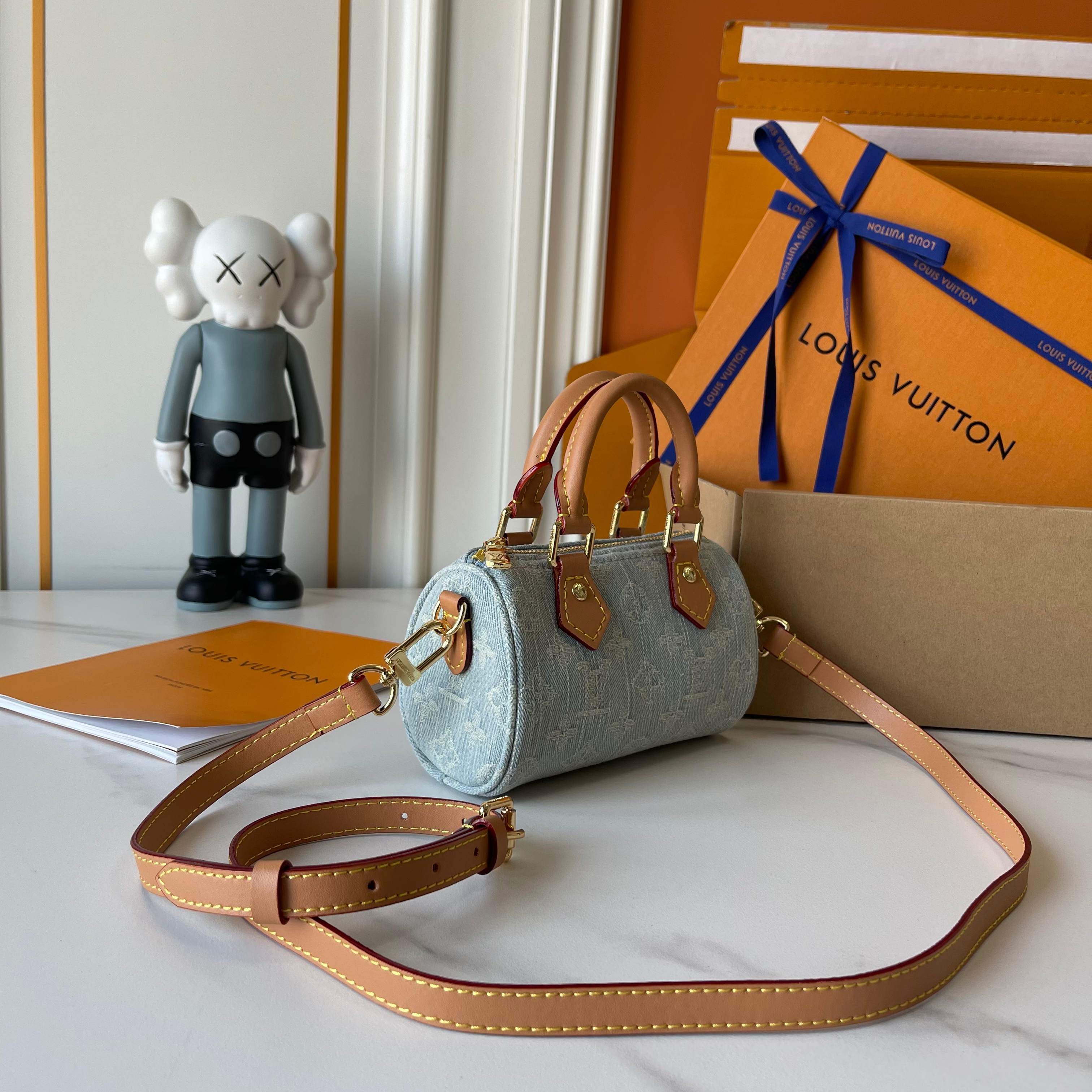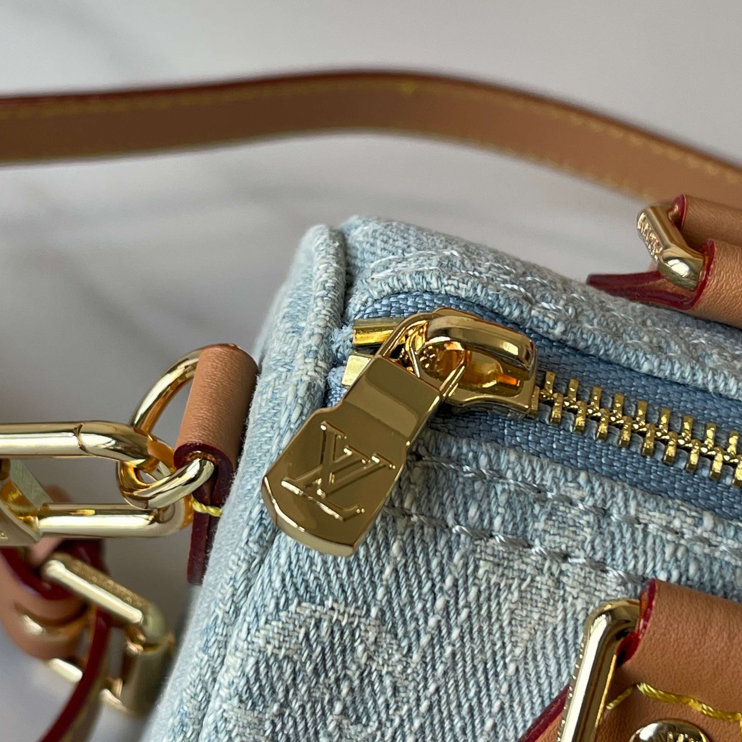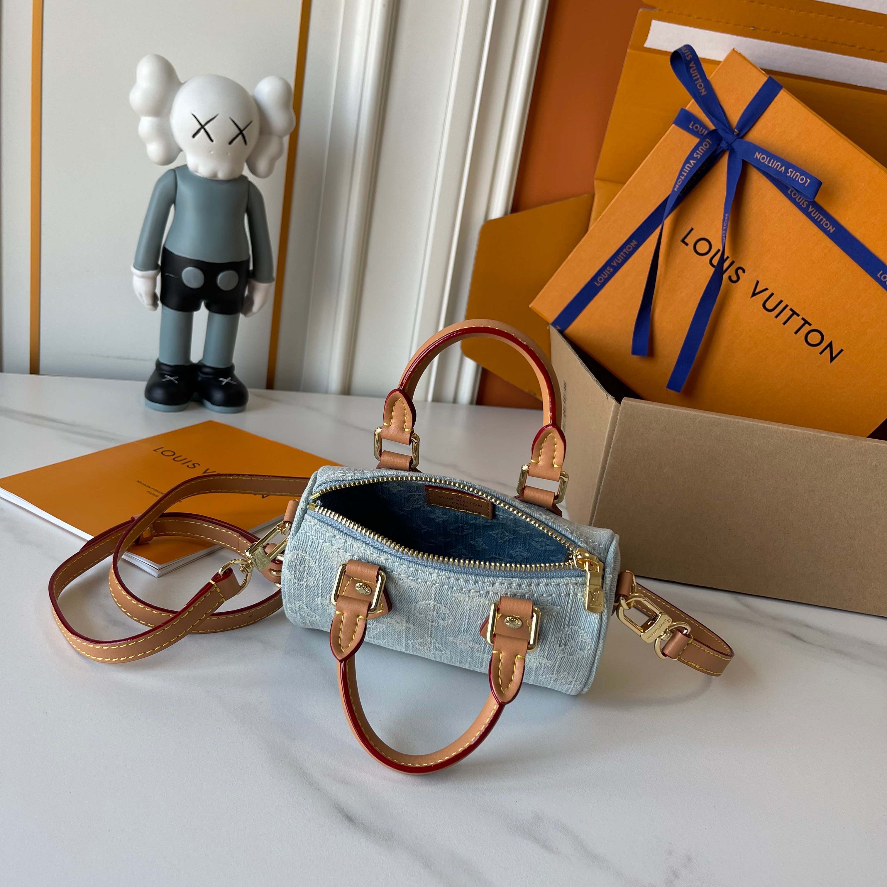 16 × 10 × 7.5 cmのミニサイズながら、Speedyシリーズの伝統的な構造(トロンハンドル・ジッパー開閉)を継承。枕型のシンプルなシルエットは、手荷物としても持ち運びやすく、通勤から旅行まで幅広く対応。