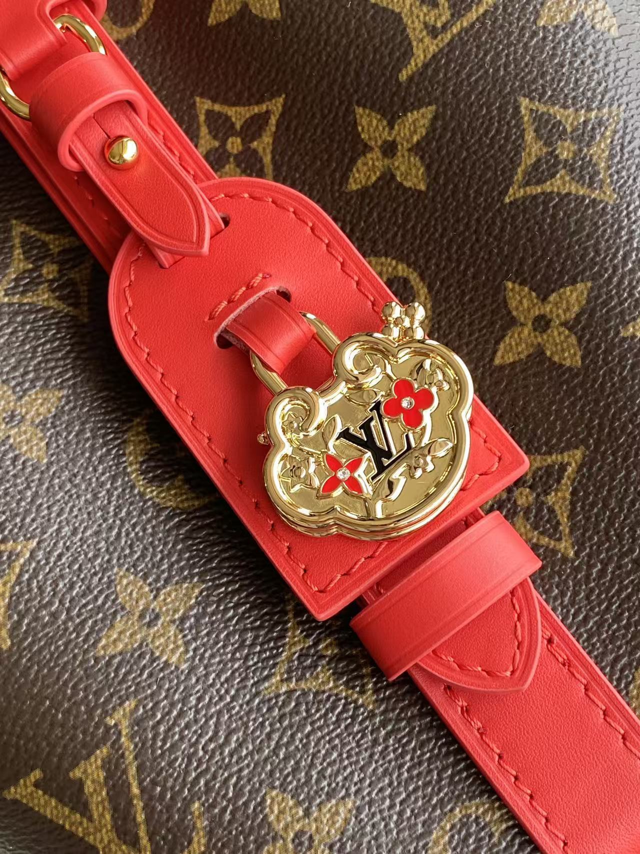 モノグラム帆布のクラシックな美しさを保ちつつ、内装には鮮やかな赤や金のアクセントカラーを採用。新春の祝祭ムードを高める、コレクターズアイテムとしての価値が高いデザインです。