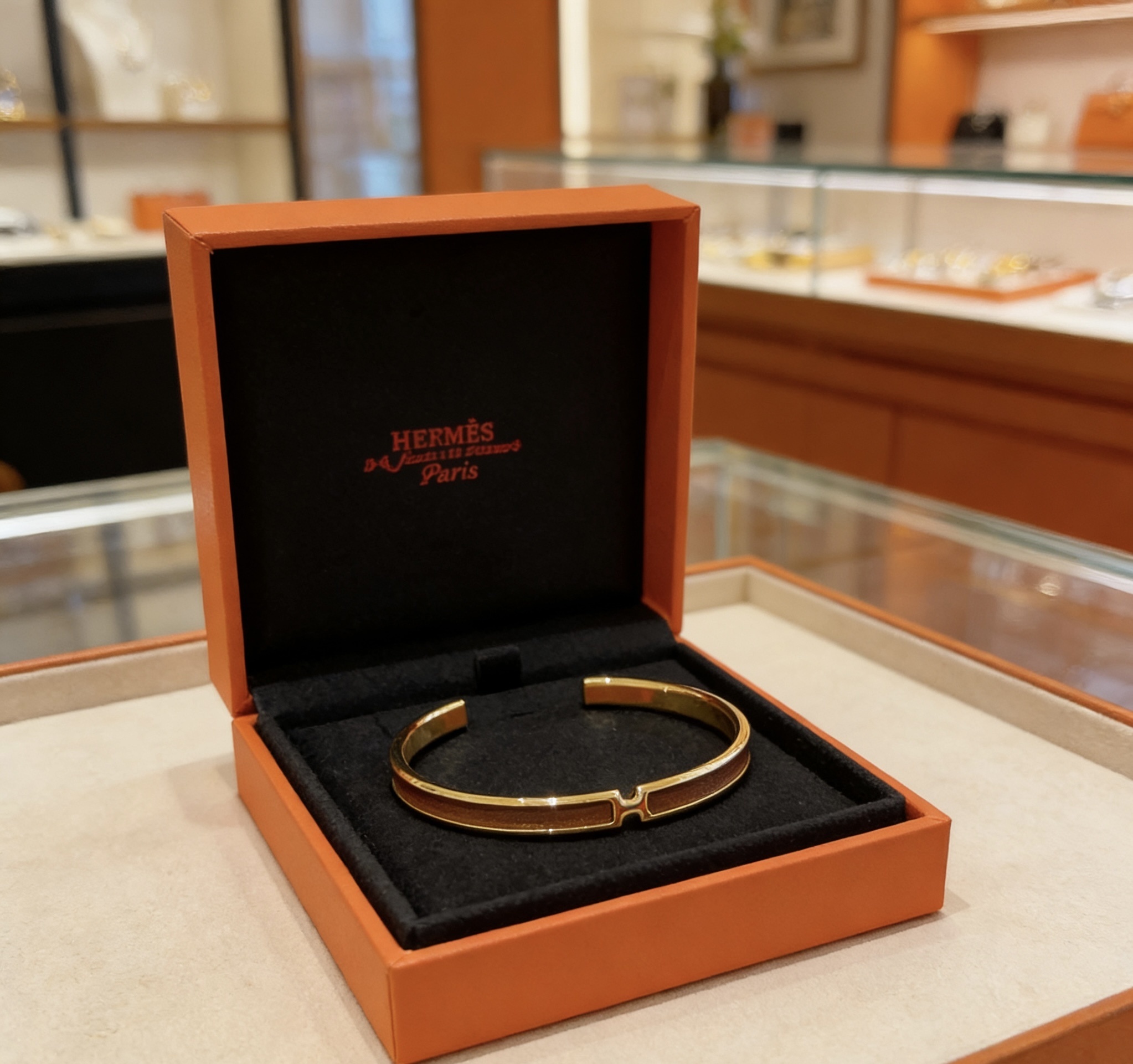 エルメス風 エナメル カフスブレスレット
