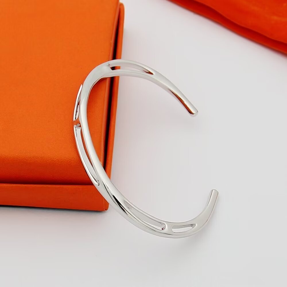 エルメスの象徴ともいえる「Hモチーフ」をあしらった、クラシックなブレスレットです。通称「ピッグノーズ(豚鼻)」と呼ばれる愛らしいシルエットが、手元にほんのりと高級感を添えます。どんな装いにも馴染みやすく、長く愛される普遍的なデザインに仕上げました。