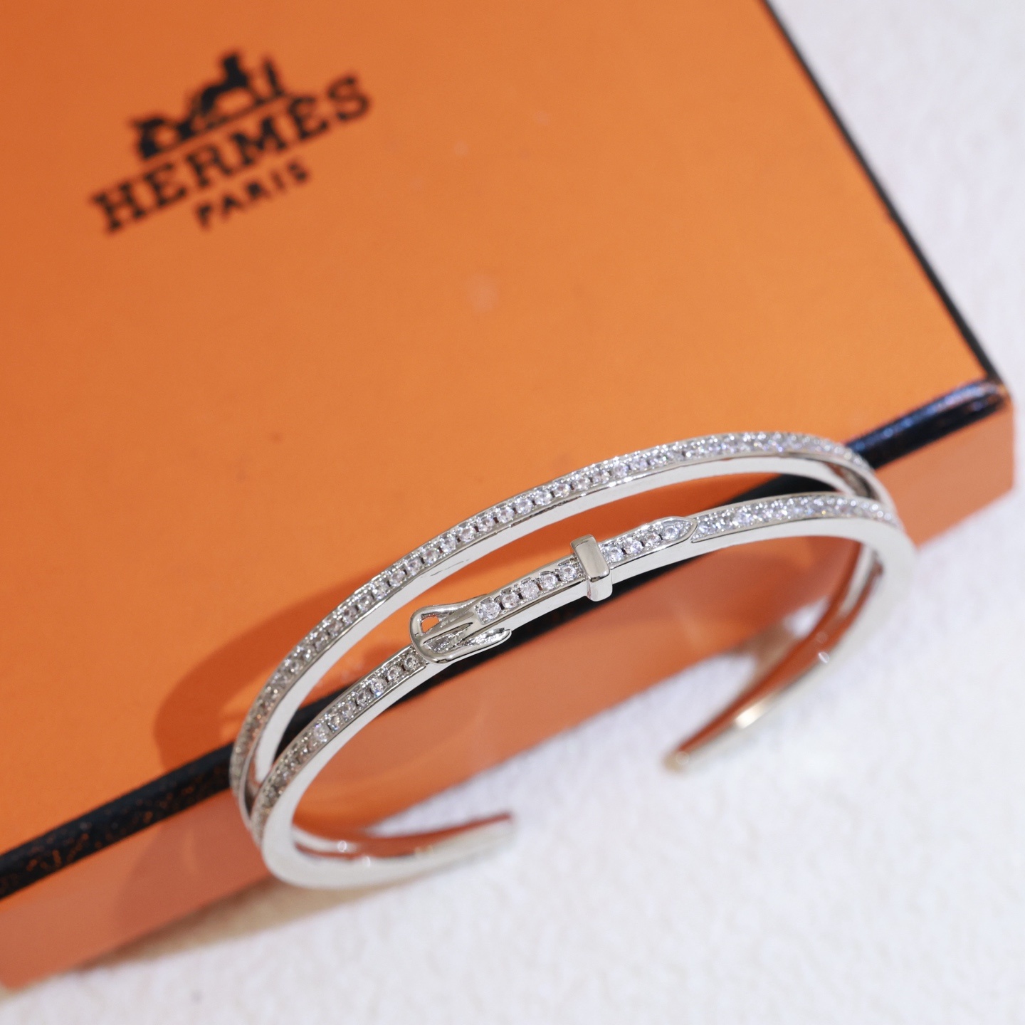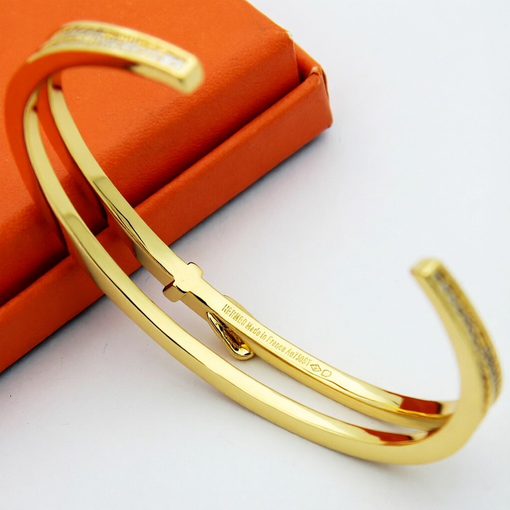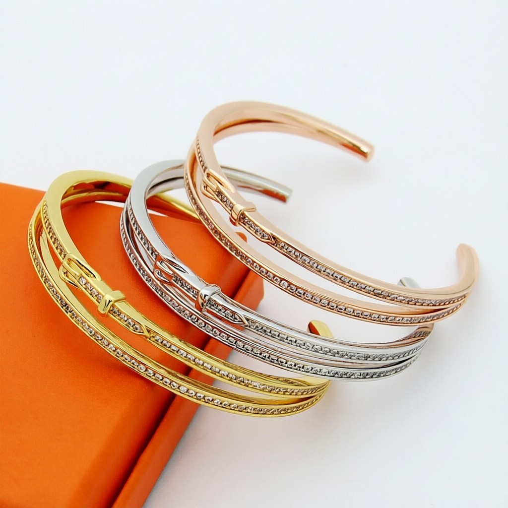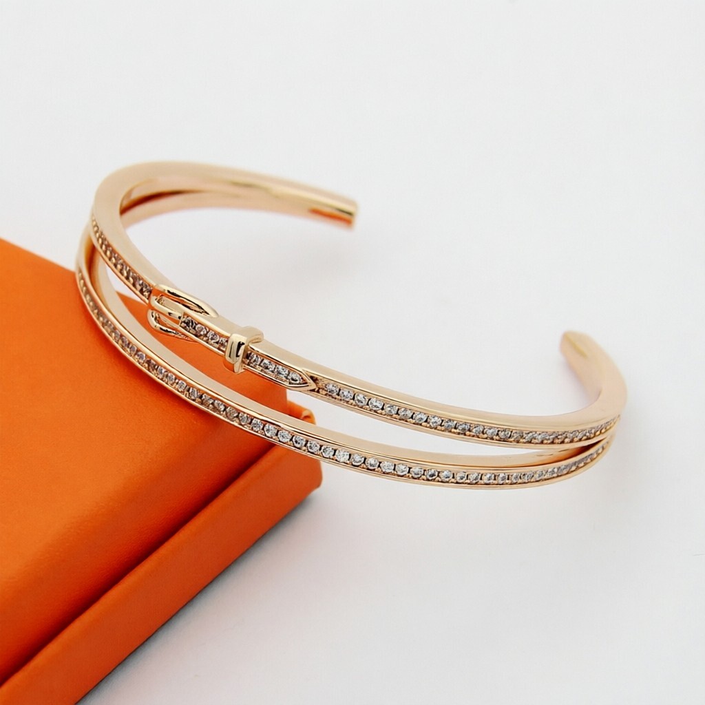 【Hermès エルメス】 フルダイヤ ベルトバックル ブレスレット |高級真鍮&18Kメッキ加工|高炭素ストーン精密セッティング|