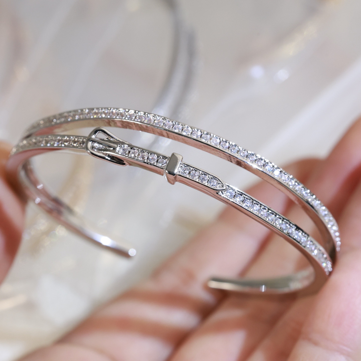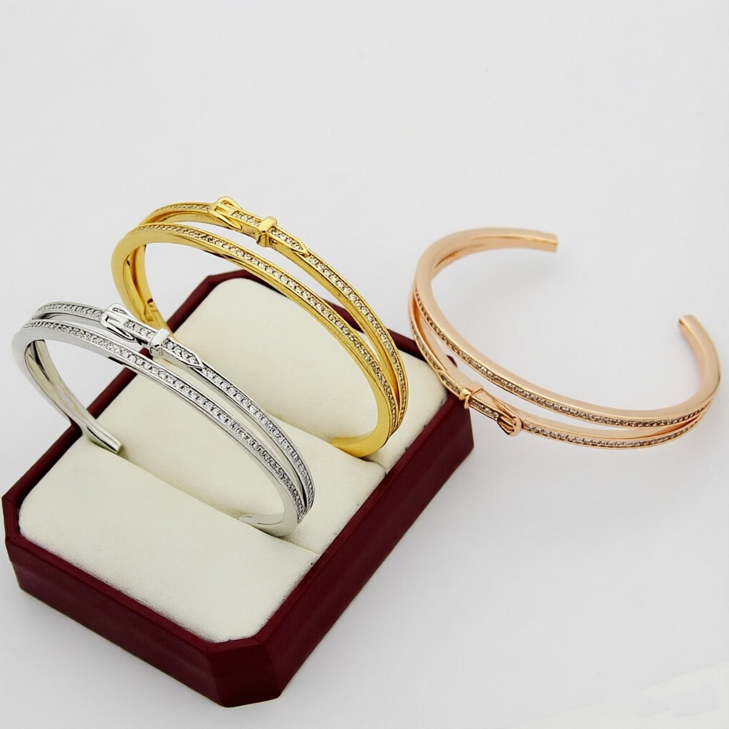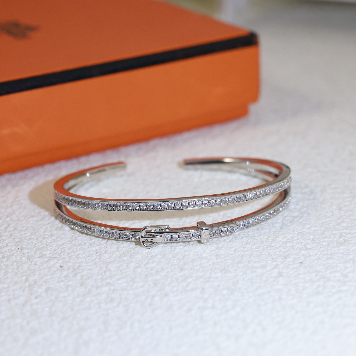 【Hermès エルメス】 フルダイヤ ベルトバックル ブレスレット |高級真鍮&18Kメッキ加工|高炭素ストーン精密セッティング|