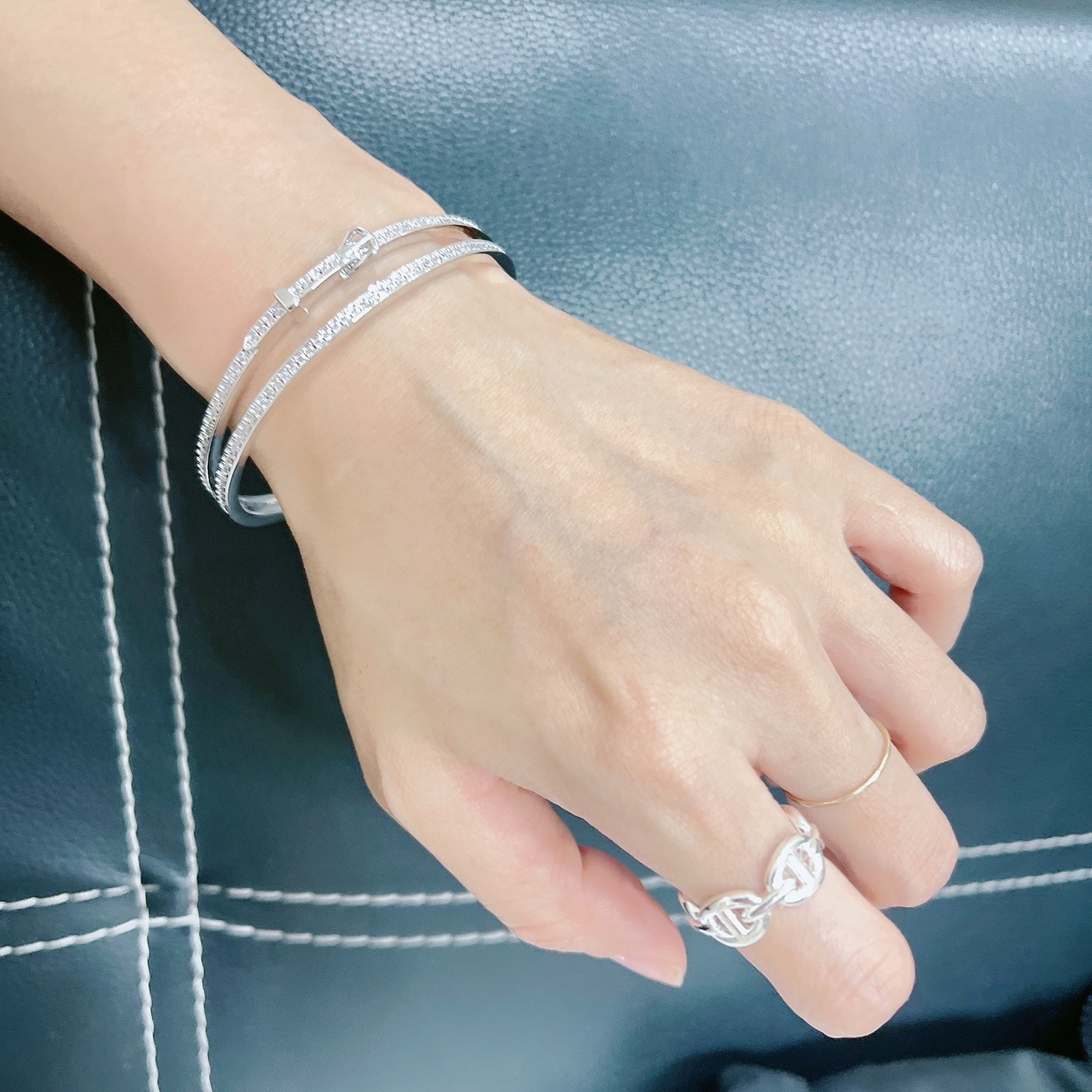 重厚感のあるフォルム全体に高炭素ストーンを隙間なく敷き詰めた「フルダイヤ」仕様。手元に圧倒的な存在感を放ち、身につけた瞬間に“オシャレ度が爆上がり”する、今季一番の推しアイテムです。