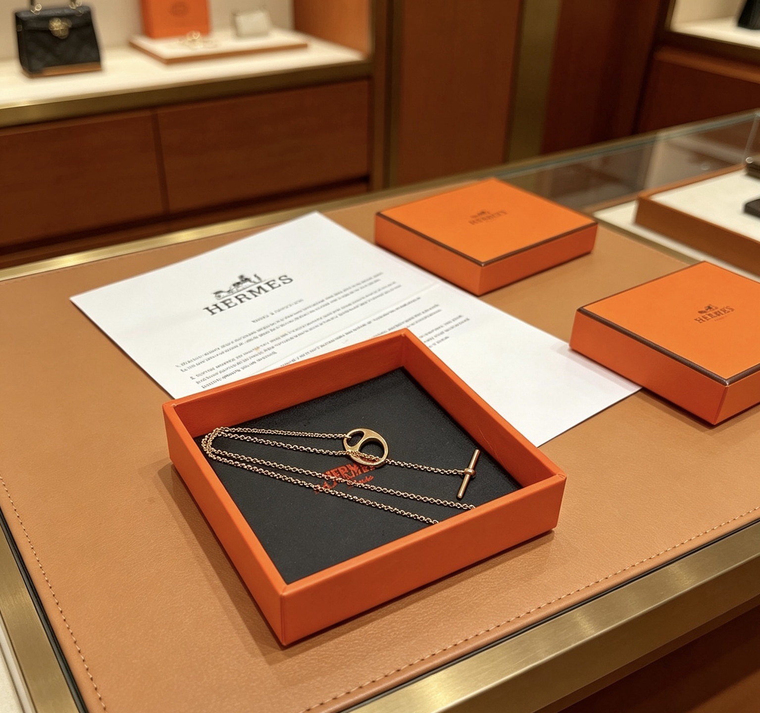 エルメスの代名詞ともいえる「ピッグノーズ(豚鼻)」シリーズのネックレス。