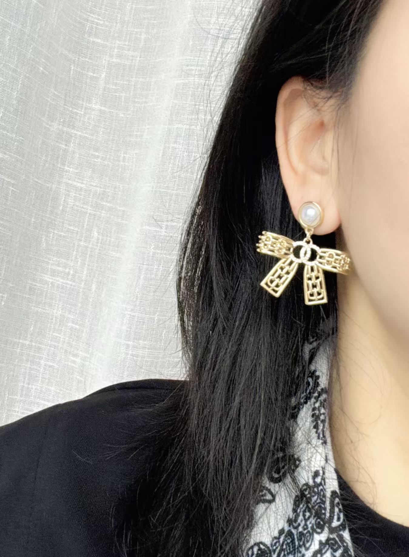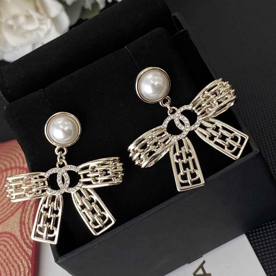 【CHANEL風】パール&フルダイヤ リボン ピアス ブティック品質 真鍮 シンプル 上品 大人可愛い 公式一致
