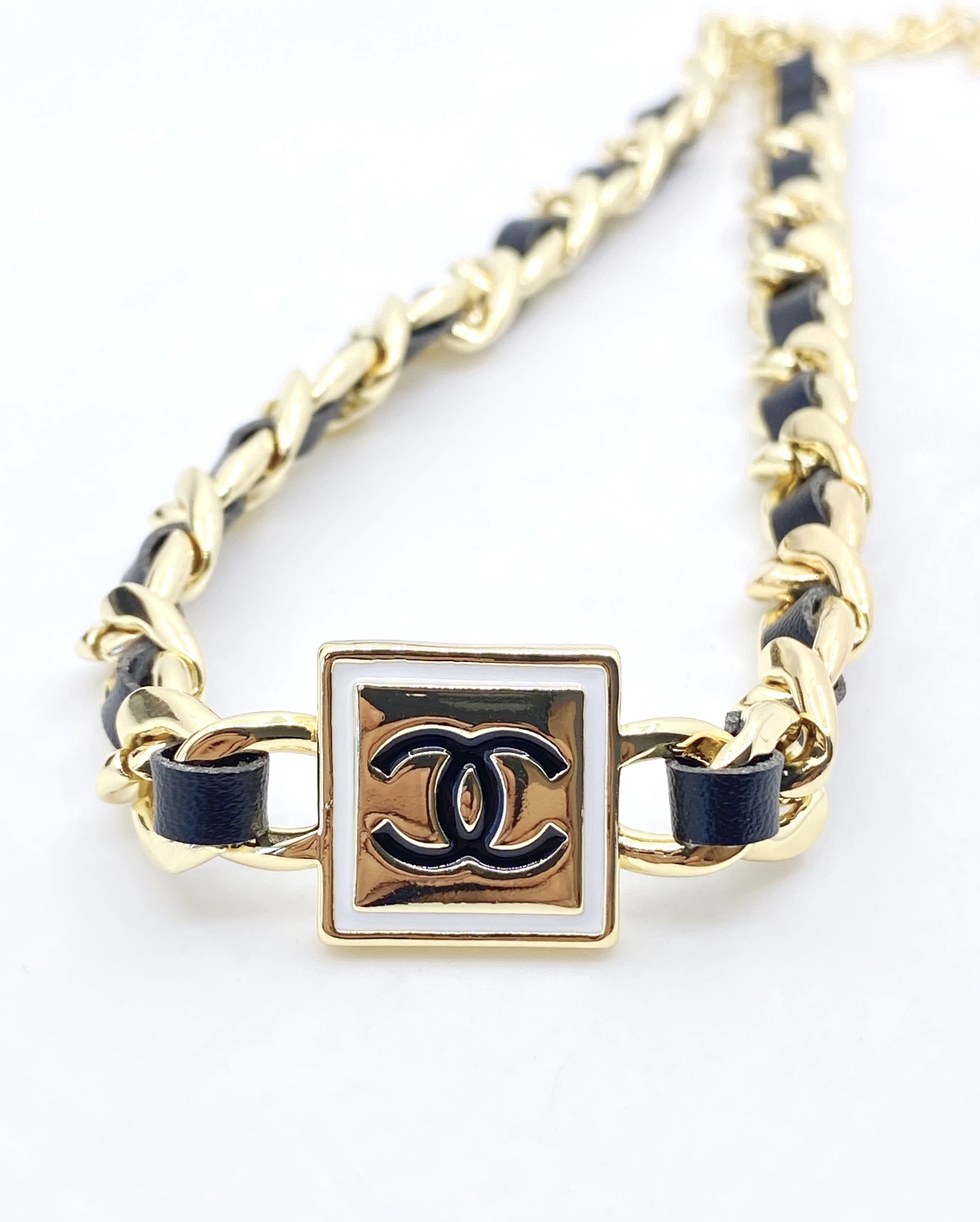 シャネルの新作・定番モデルとして人気の高い、ブラックレザーのブレスレットです。