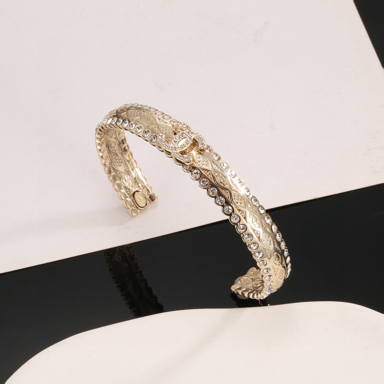 シャネルのアイコンであるダブルC(CCロゴ)を核に、繊細なパール(真珠)とキラキラと輝くジルコニア(锆石)が精密にセッティングされた、今季注目の新作モデルです。