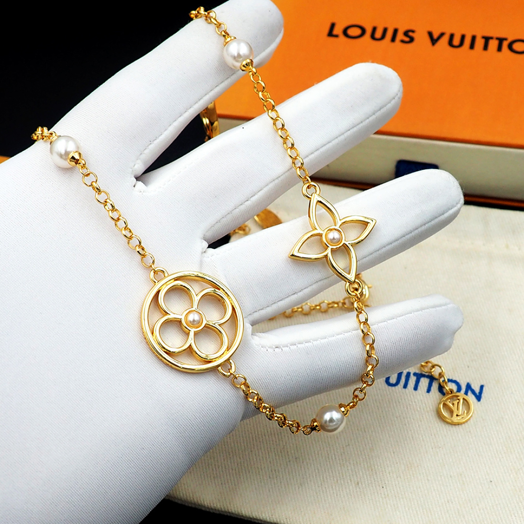 艶やかなレジンビーズ(莹泽树脂珠饰)を、モノグラム・フラワーとLVサークル(LV Circle标识)の間に巧みに配し、動きのあるシルエエットを描きます。