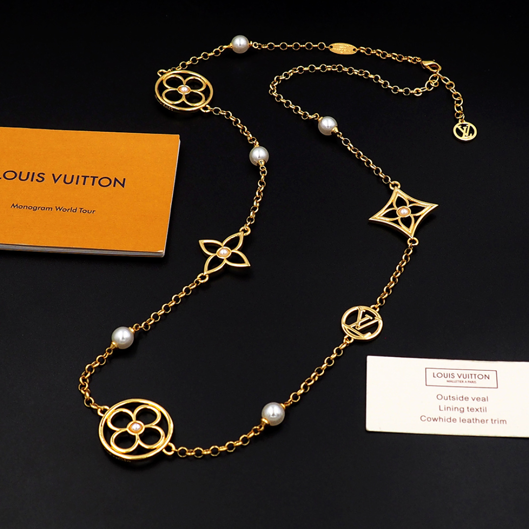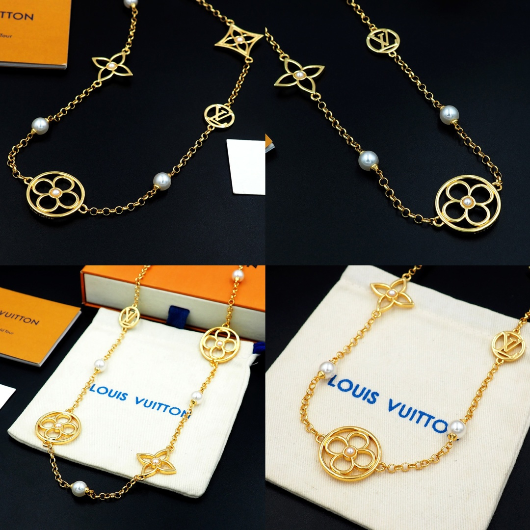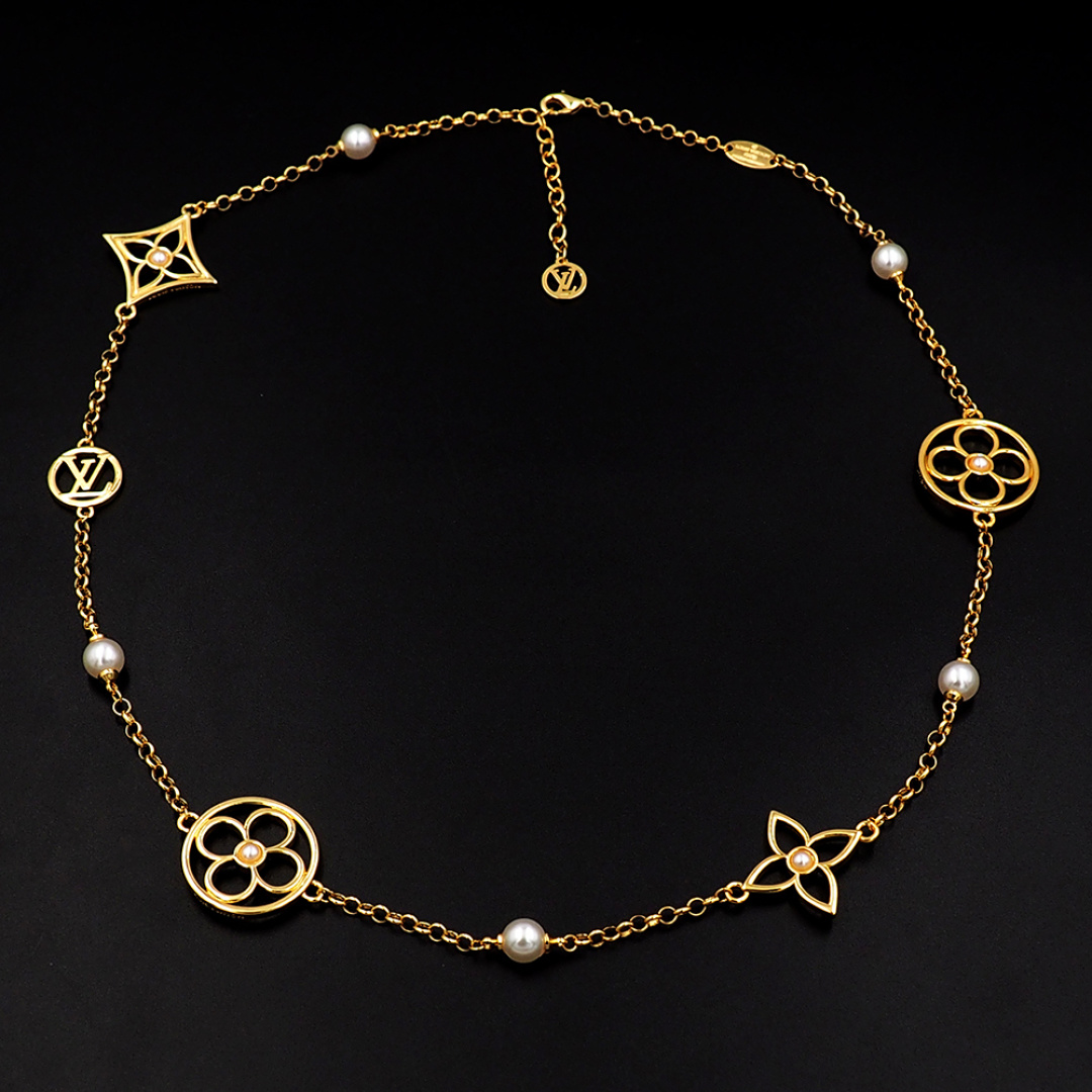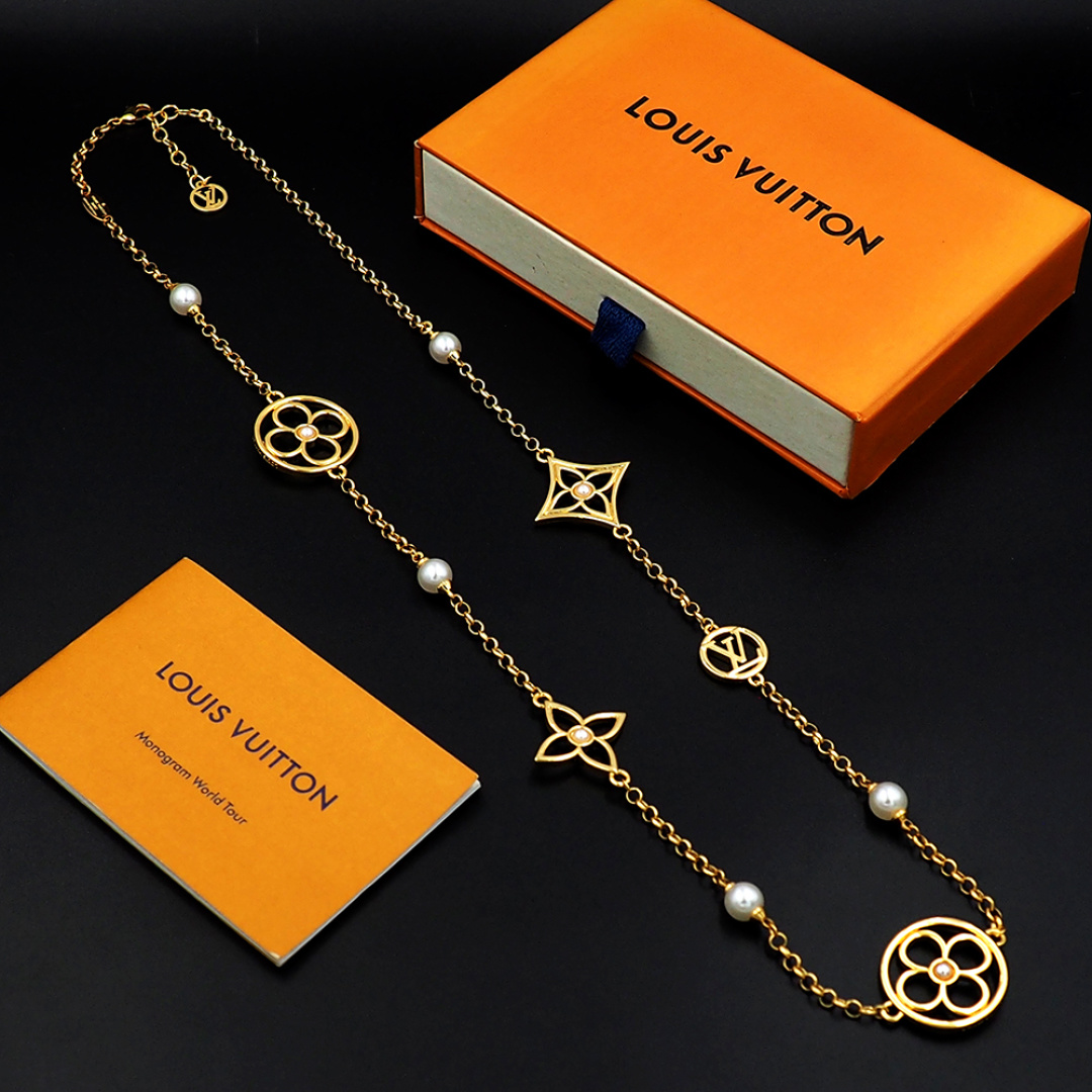 【LOUIS VUITTON】ルイ・ヴィトン ネックレス ロング パーティーフラワー レジンビーズ モノグラム フラワー LVサークル レディース