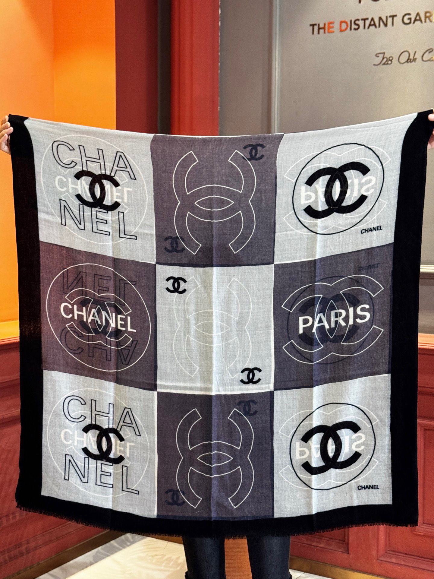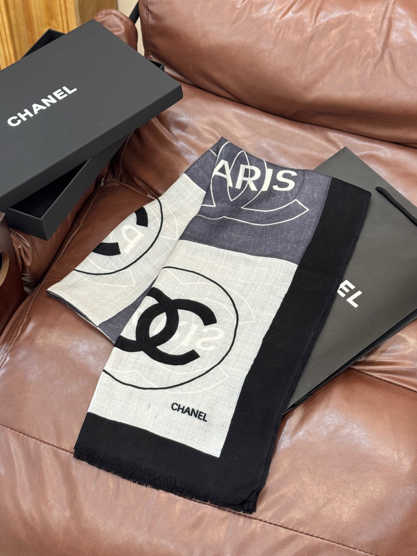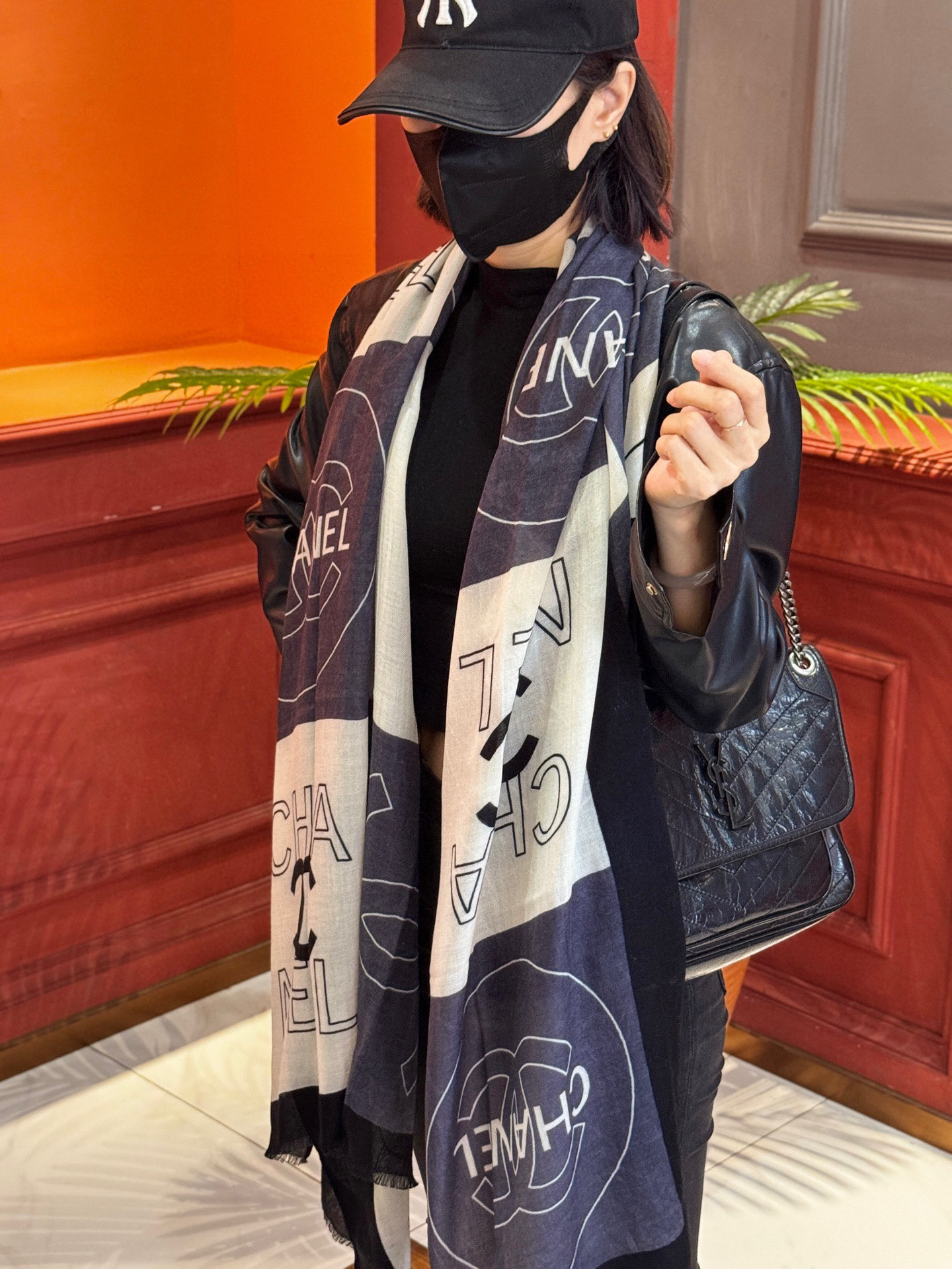 【CHANEL公式】2025年限定「ダブルC・カメリア」ダブルフェイスウールスカーフ
