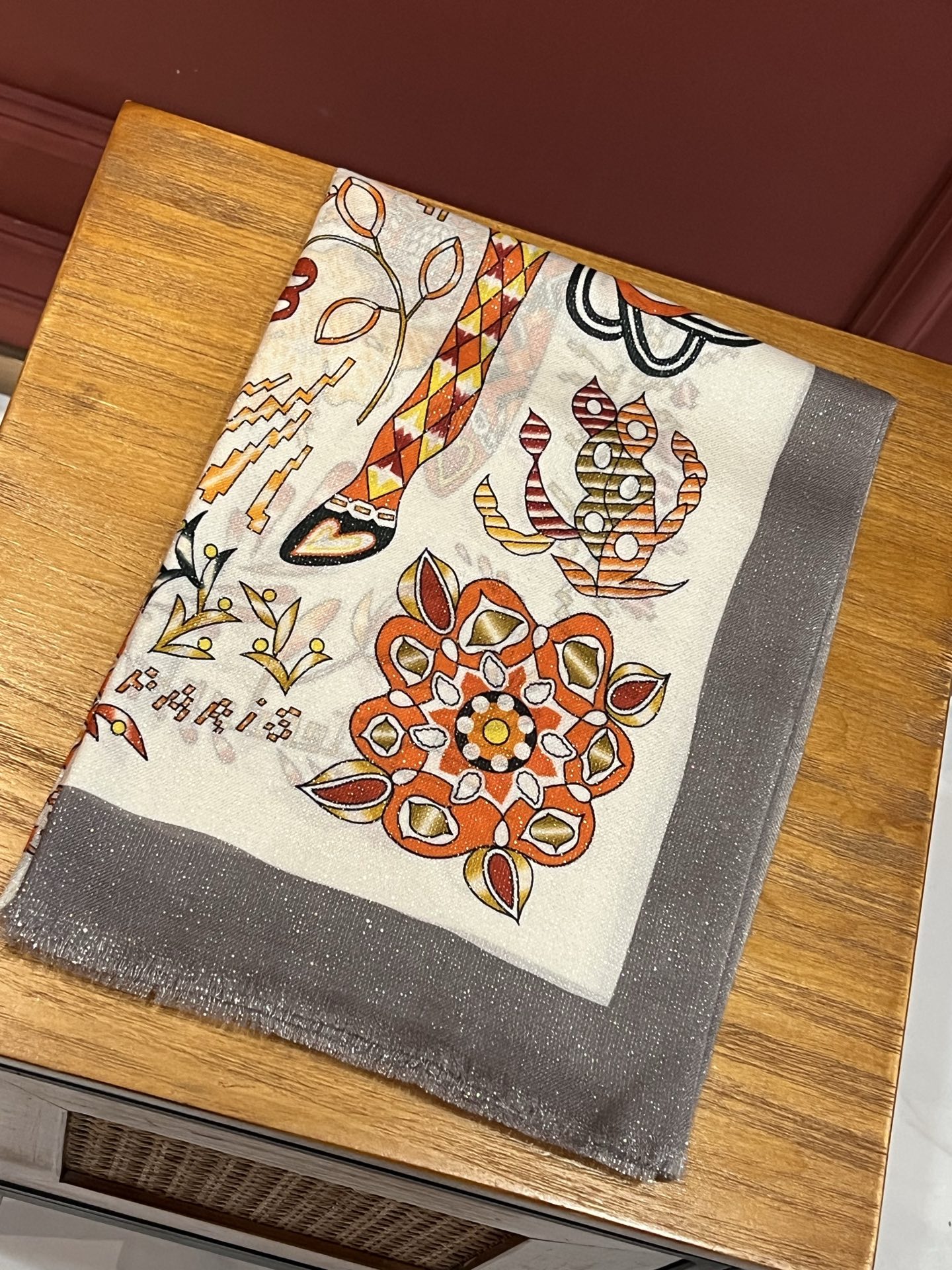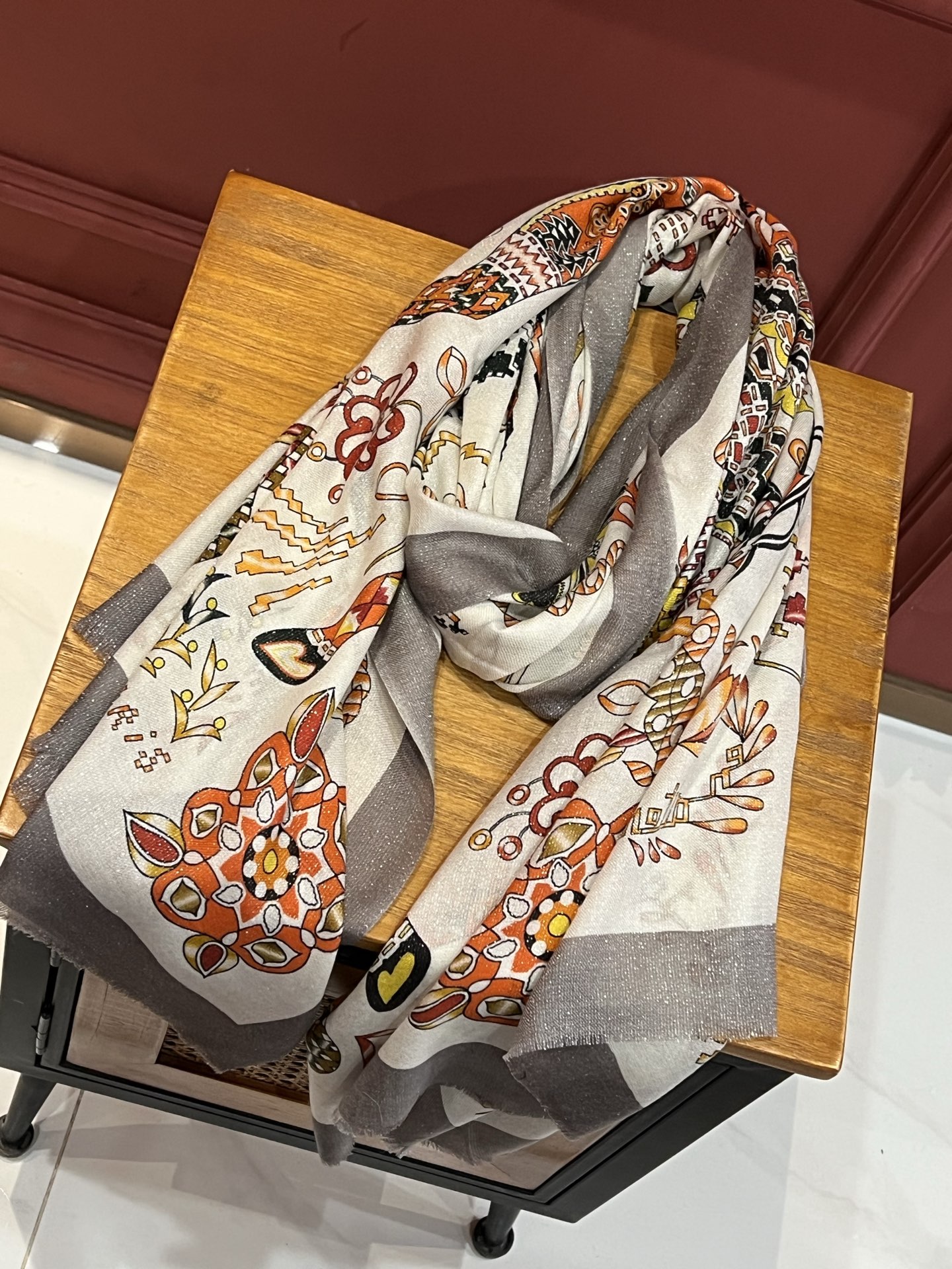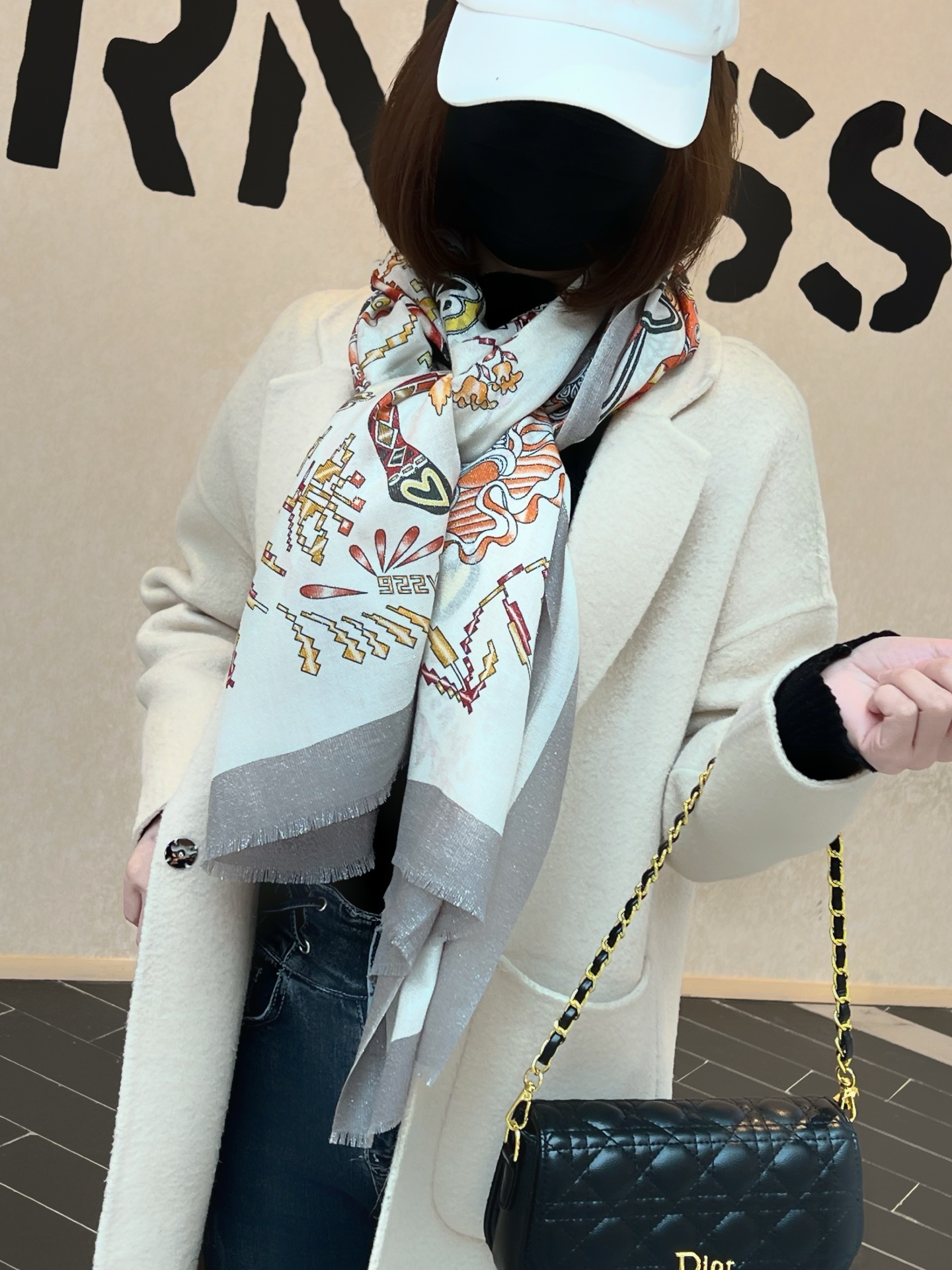 【Hermès公式】2025秋冬限定「ライト・オブ・ウルトラ」光沢ジャカード羊绒スカーフ 100×200cm/100%スコットランド産メリノウール/光を纏う極上の芸術品**