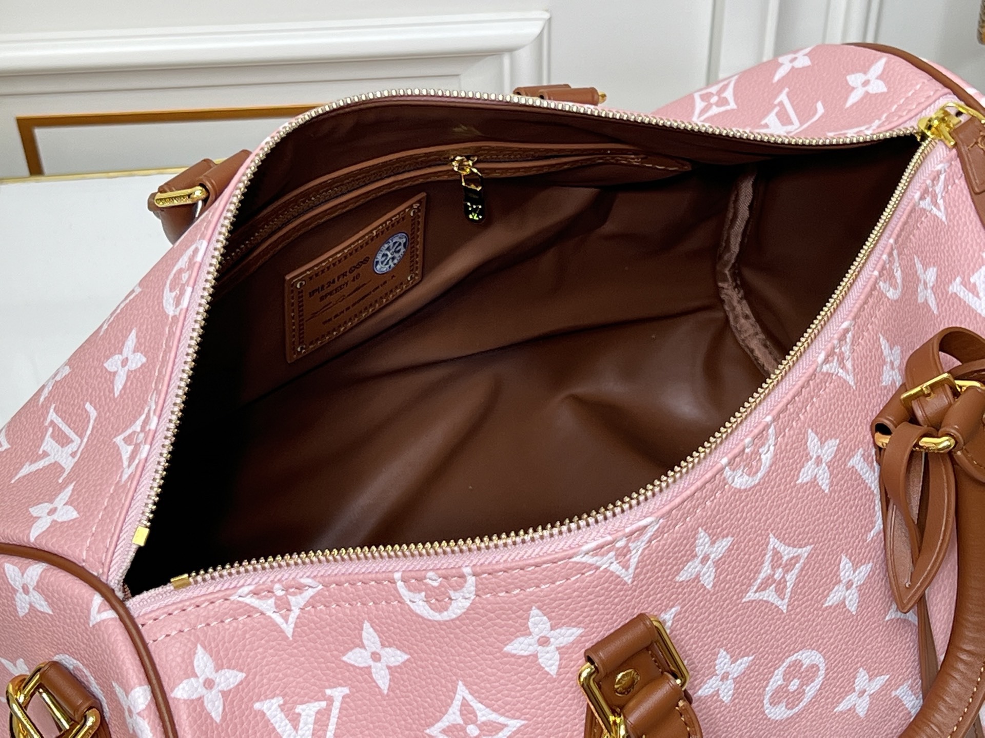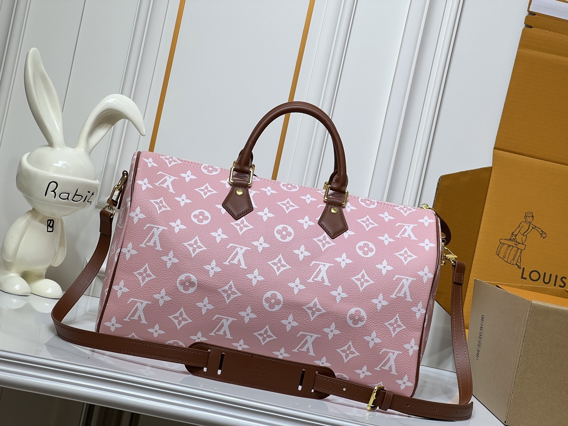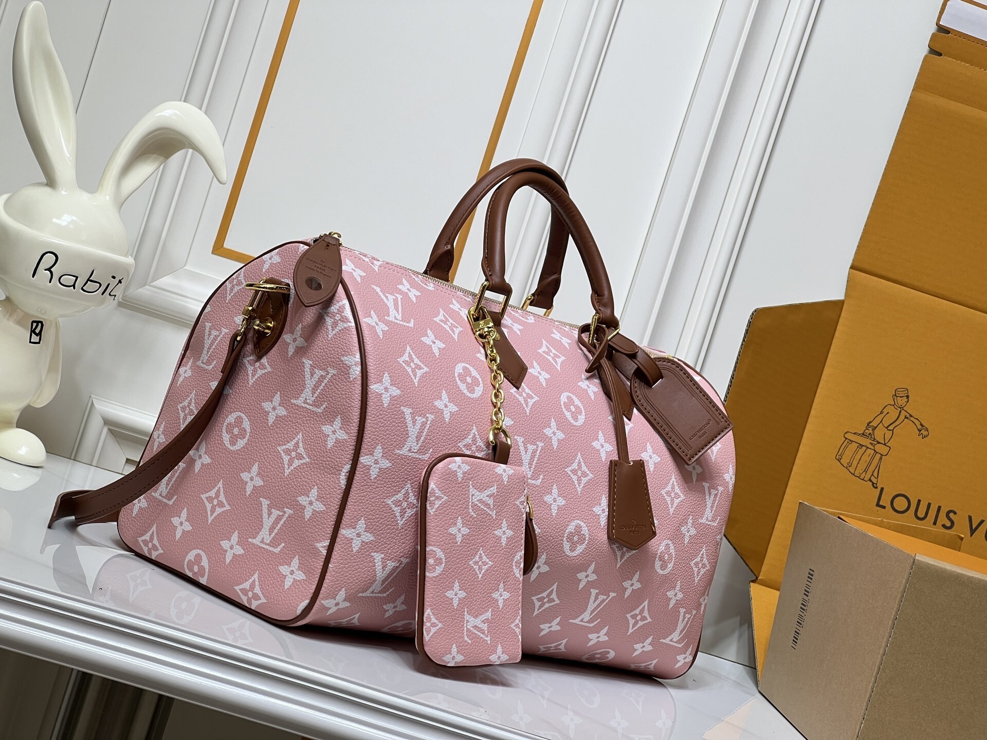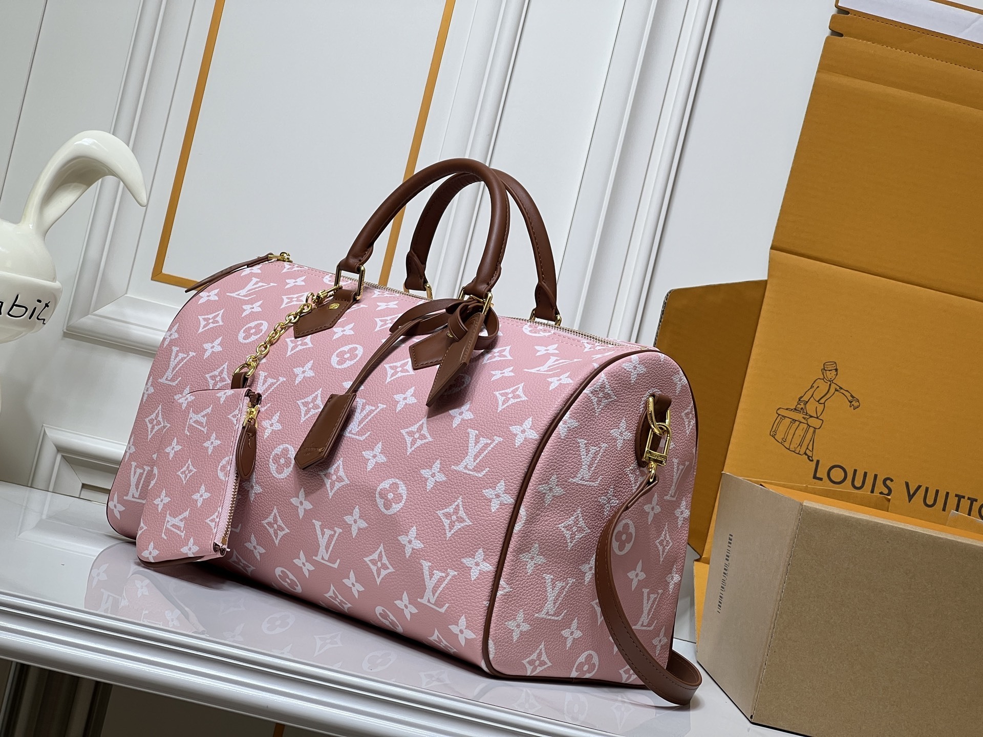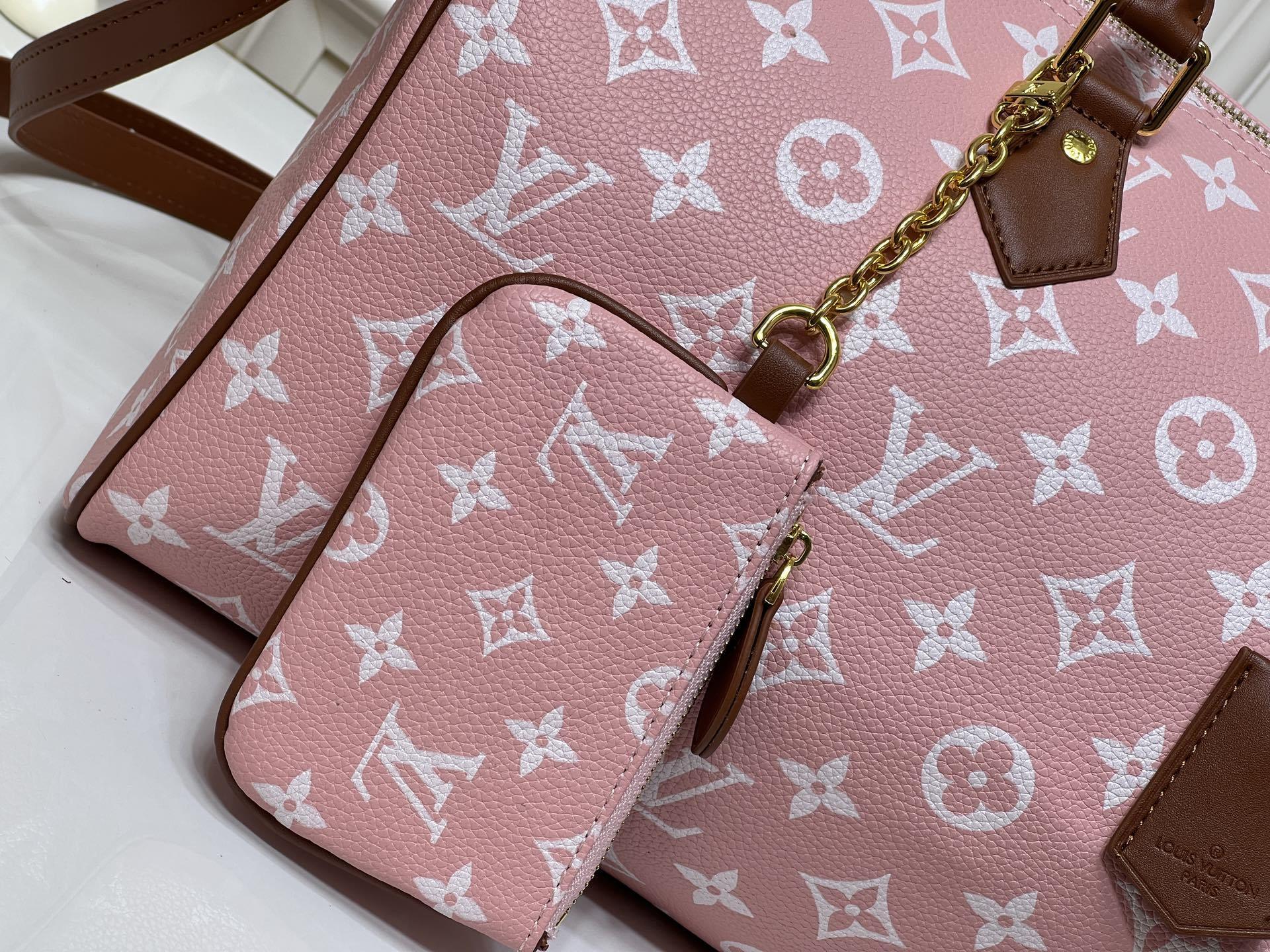 ルイ・ヴィトンの「スピーディ」シリーズを革新した高級皮革バージョン。2025年秋冬コレクションの「アーバン・リトロ」テーマに基づき、40cmの立体的なボディに「柔らかな粒面牛革」と「手作業で施された羊革ライナー」を採用。フィリップ・ウィリアムス監修のもと、Monogramキャンバスをベースにしたシルキーな絲印刷技術で、従来の帆布の質感を皮革に再解釈しました